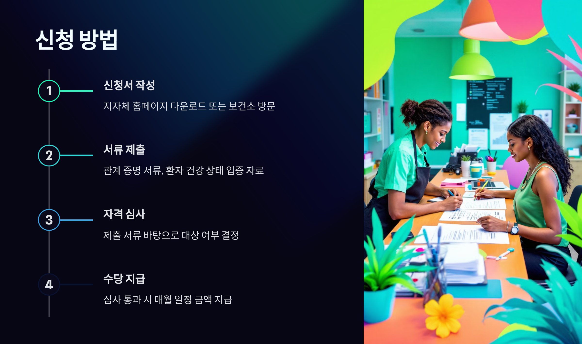 간호수당 신청은 각 지방자치단체에서 이루어지며, 지역별로 조금씩 차이가 있을 수 있습니다. 신청 절차를 알려드립니다.