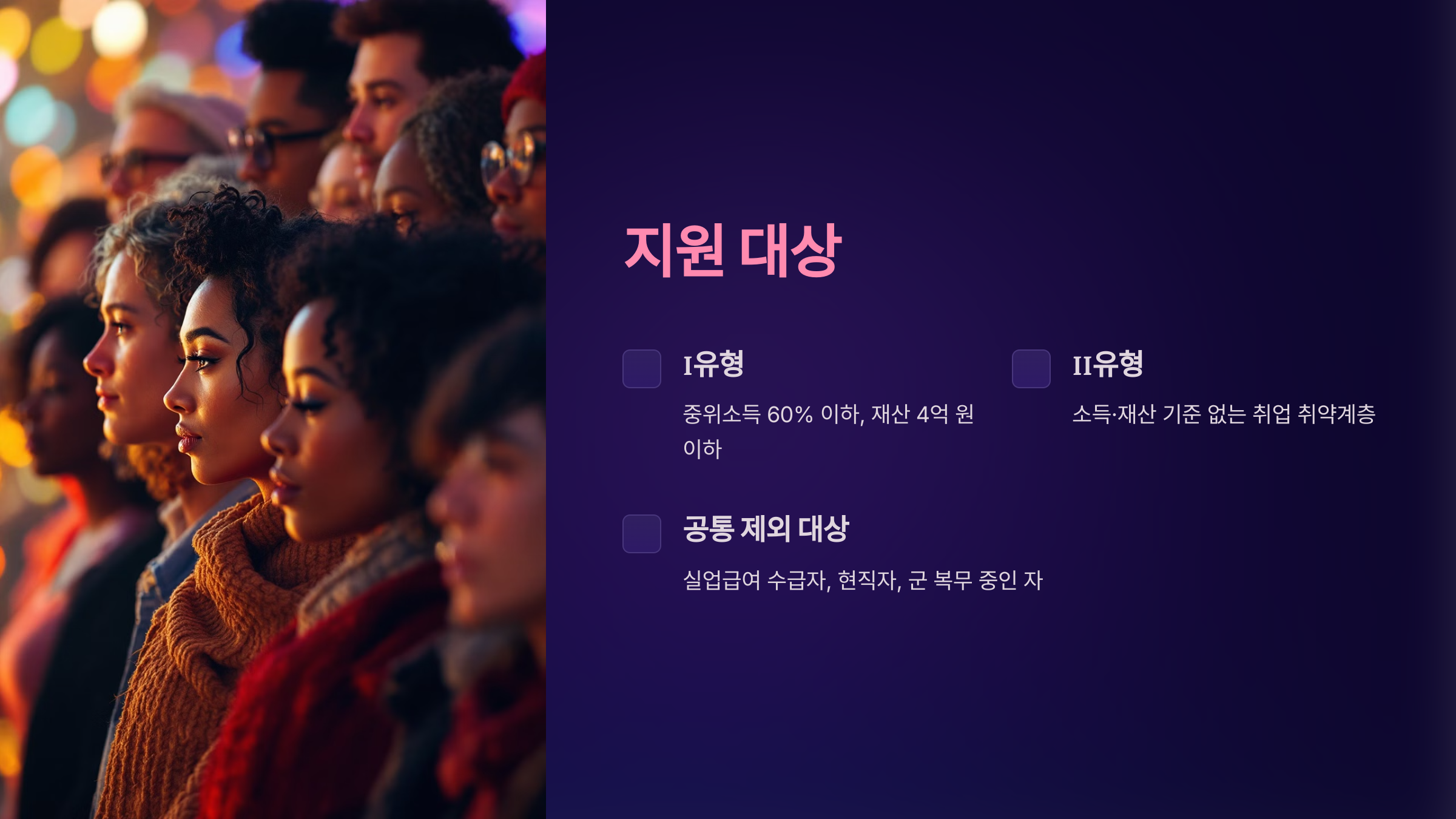- II유형: 소득 기준 없이 취업 취약계층 여부 확인.