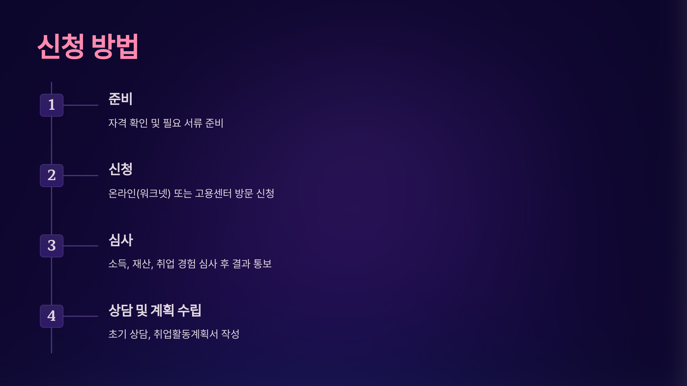 | 2. 신청 | 워크넷에서 온라인 신청 또는 고용센터 방문 신청 |