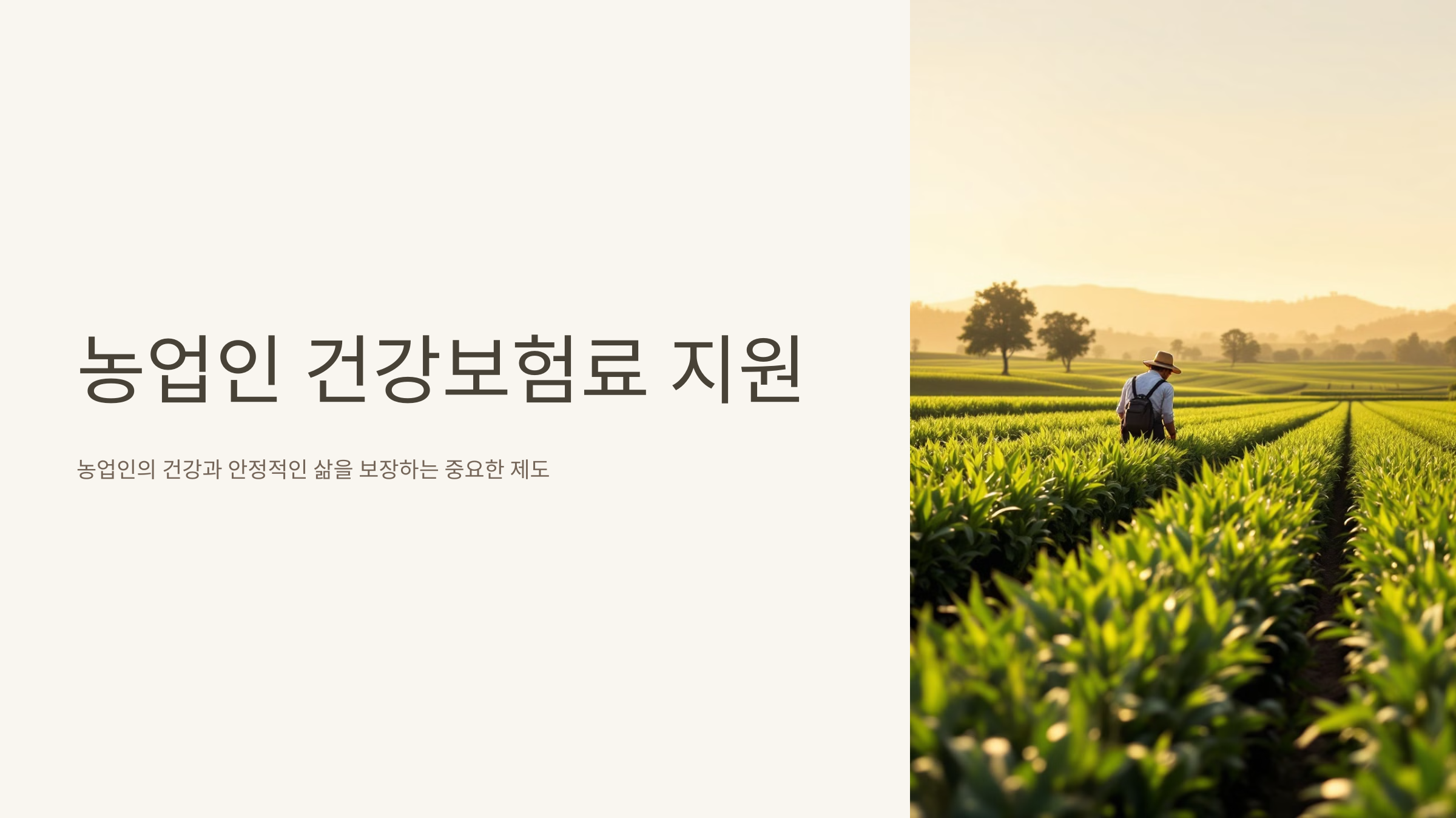 농업인은 계절별로 수입이 변동되는 직업 특성을 가지고 있습니다. 이에 정부에서는 건강보험료의 일부를 지원하여 농업인의 부담을 줄이고, 안정적인 의료 서비스를 받을 수 있도록 돕는 제도를 운영하고 있습니다.