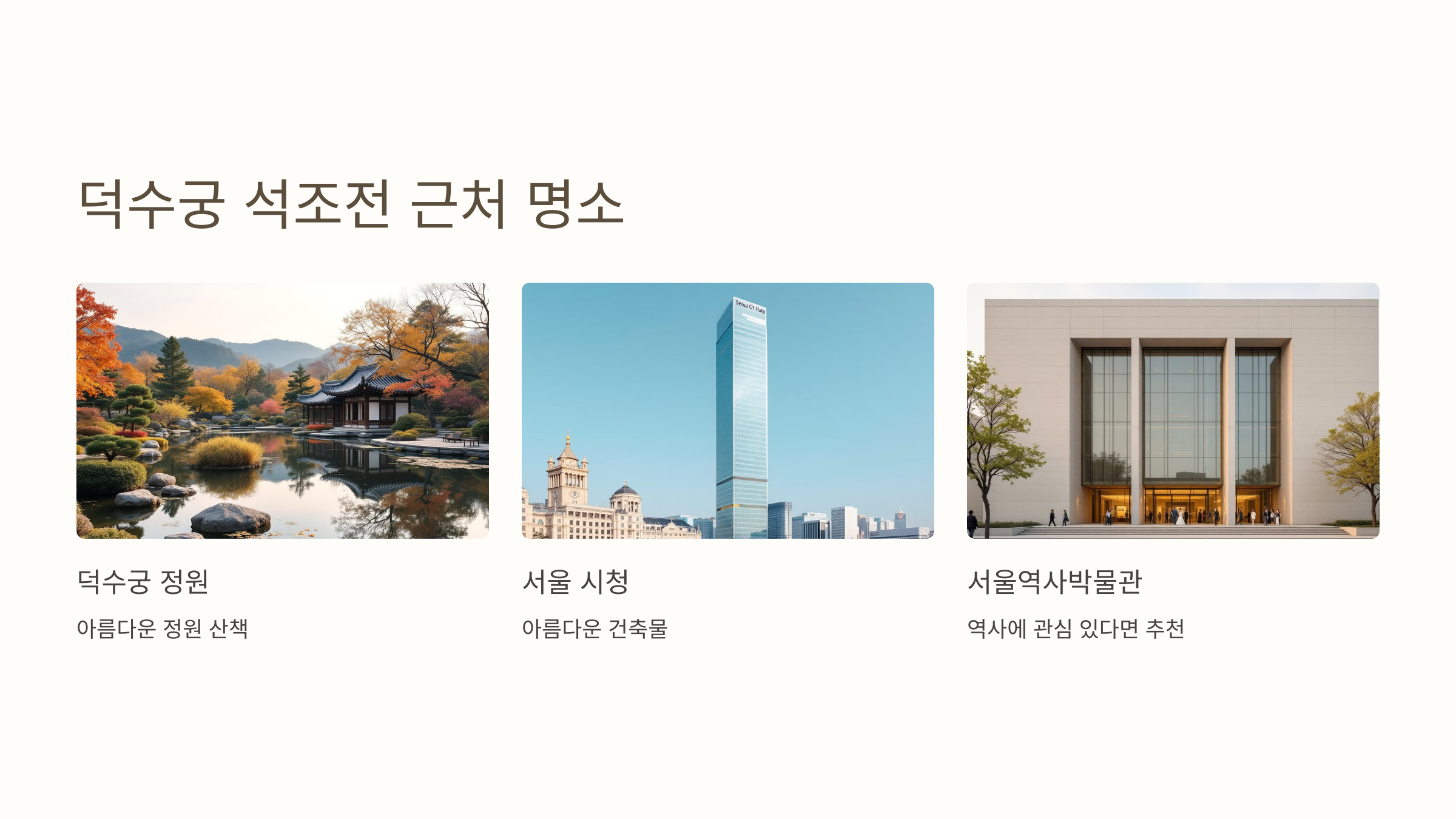 - 서울역사박물관: 역사에 관심이 많다면 덕수궁 근처의 서울역사박물관도 함께 방문하면 좋습니다.