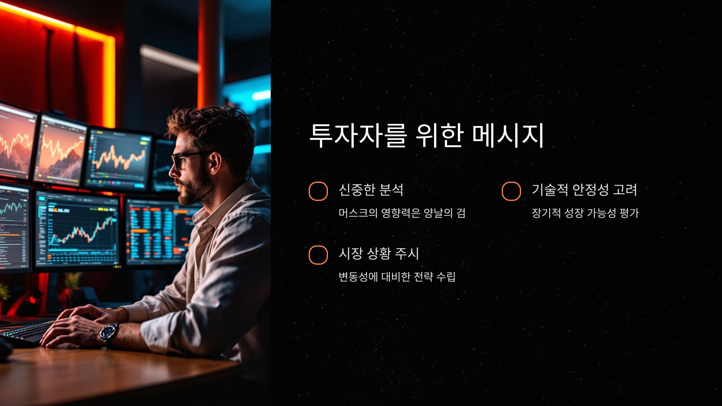 - 머스크의 발언은 시장 변동성을 높이는 요인이 될 수 있음