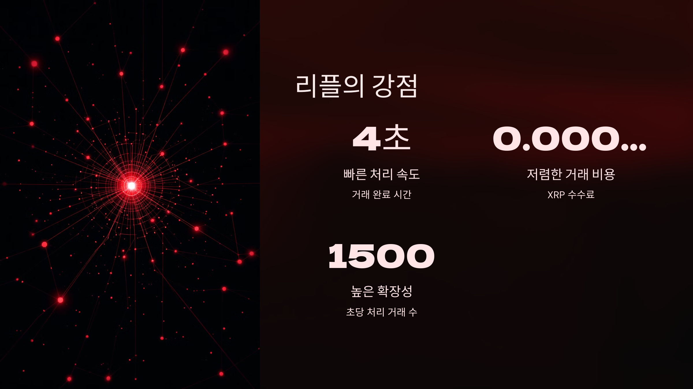 - 빠른 처리 속도: XRP를 활용한 거래는 평균 4초 이내에 완료됩니다.