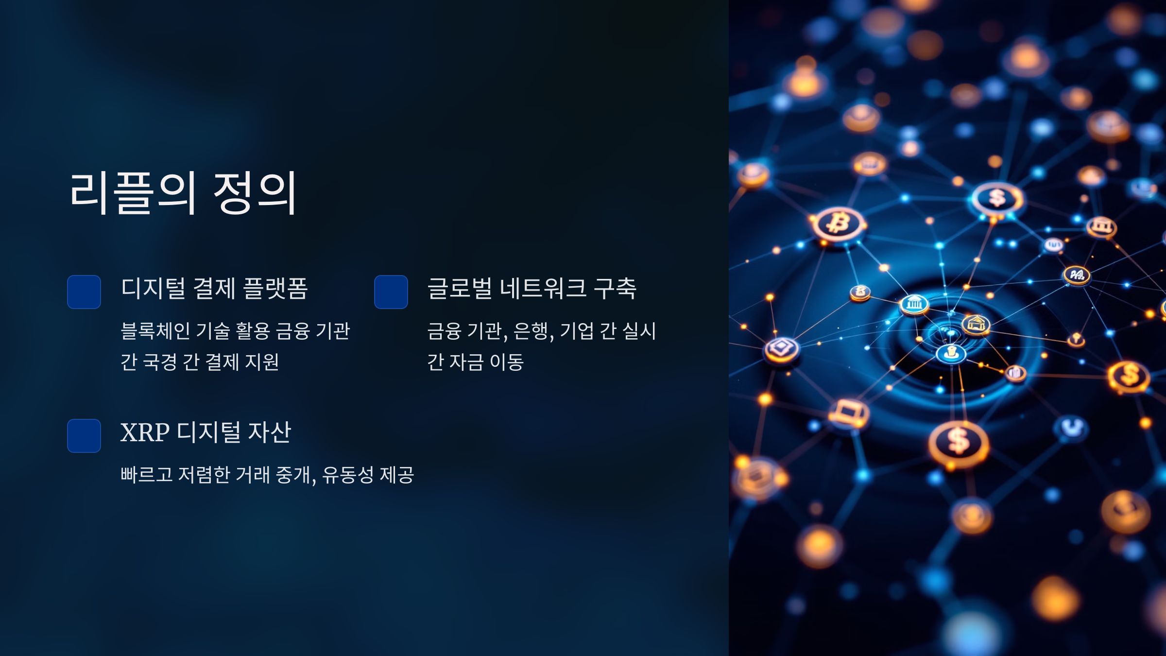 디지털 결제의 새로운 패러다임을 제시하는 리플(Ripple)은 블록체인 기술을 기반으로 국경 간 송금을 빠르고 저렴하게 처리하는 혁신적인 네트워크입니다. 2012년 설립된 리플랩스(Ripple Labs)는 리플 네트워크와 XRP라는 디지털 자산을 통해 기존 금융 시스템의 비효율성을 해결하고자 합니다. 이번 글에서는 리플의 작동 원리, 기술적 특징, 활용 사례, 시장 전망 등을 심층적으로 분석하며, 리플이 어떻게 글로벌 금융의 미래를 이끌어갈 수 있는지 알아보겠습니다.