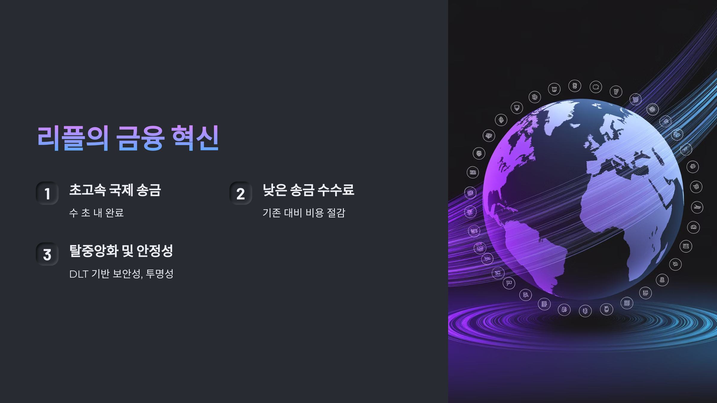 ✅ 초고속 국제 송금: 기존 SWIFT 시스템보다 빠른 송금 가능 (수 초 내 완료).