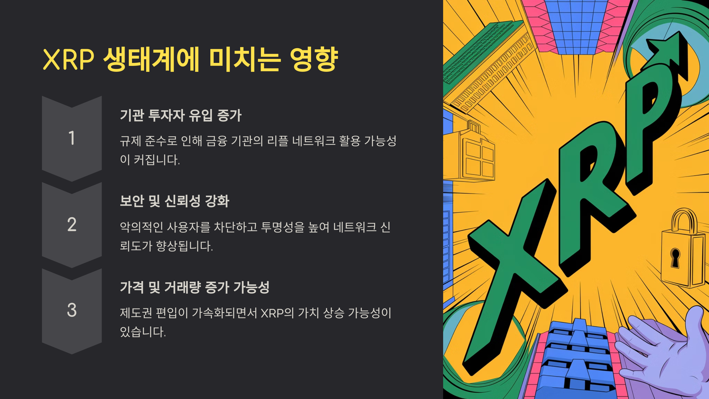 A2. 규제 준수 강화로 인해 기관 투자자의 유입이 증가할 가능성이 있어, 장기적으로 XRP의 가치 상승에 긍정적인 영향을 미칠 수 있습니다.