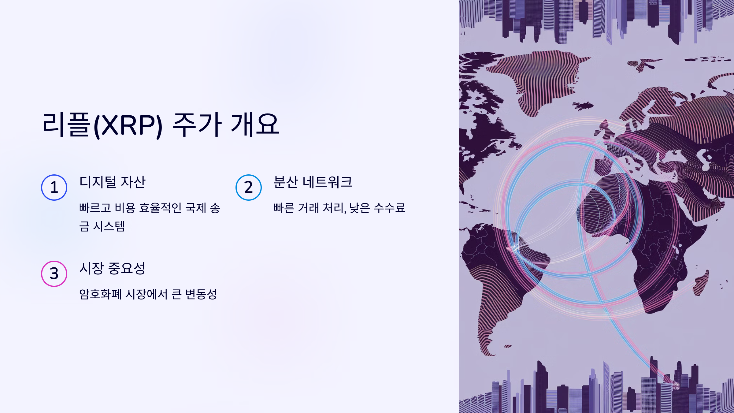 리플(XRP)은 디지털 자산 중 하나로, 주로 빠르고 비용 효율적인 국제 송금 및 결제 시스템을 제공하기 위해 설계되었습니다. XRP는 중앙 집중화된 시스템이 아닌 분산된 네트워크를 통해 운영되며, 빠른 거래 처리 속도와 낮은 수수료로 금융 기관들 사이에서 높은 수요를 얻고 있습니다.