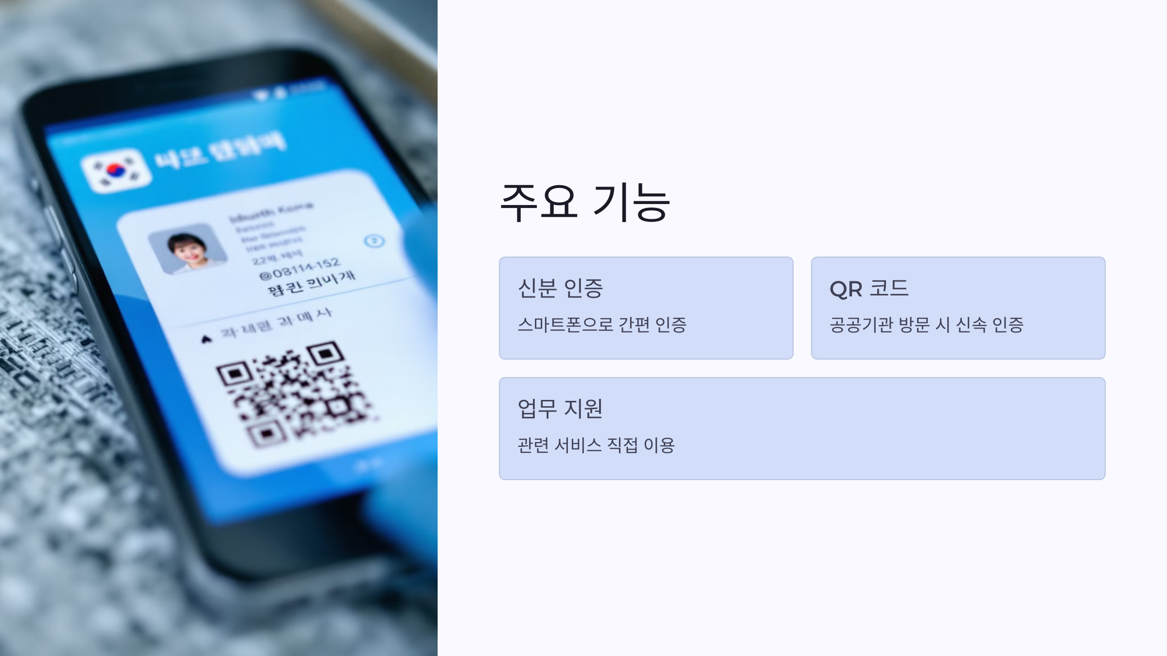 - 보안성 강화: 실물 공무원증의 분실 위험 없이 안전하게 관리할 수 있습니다.