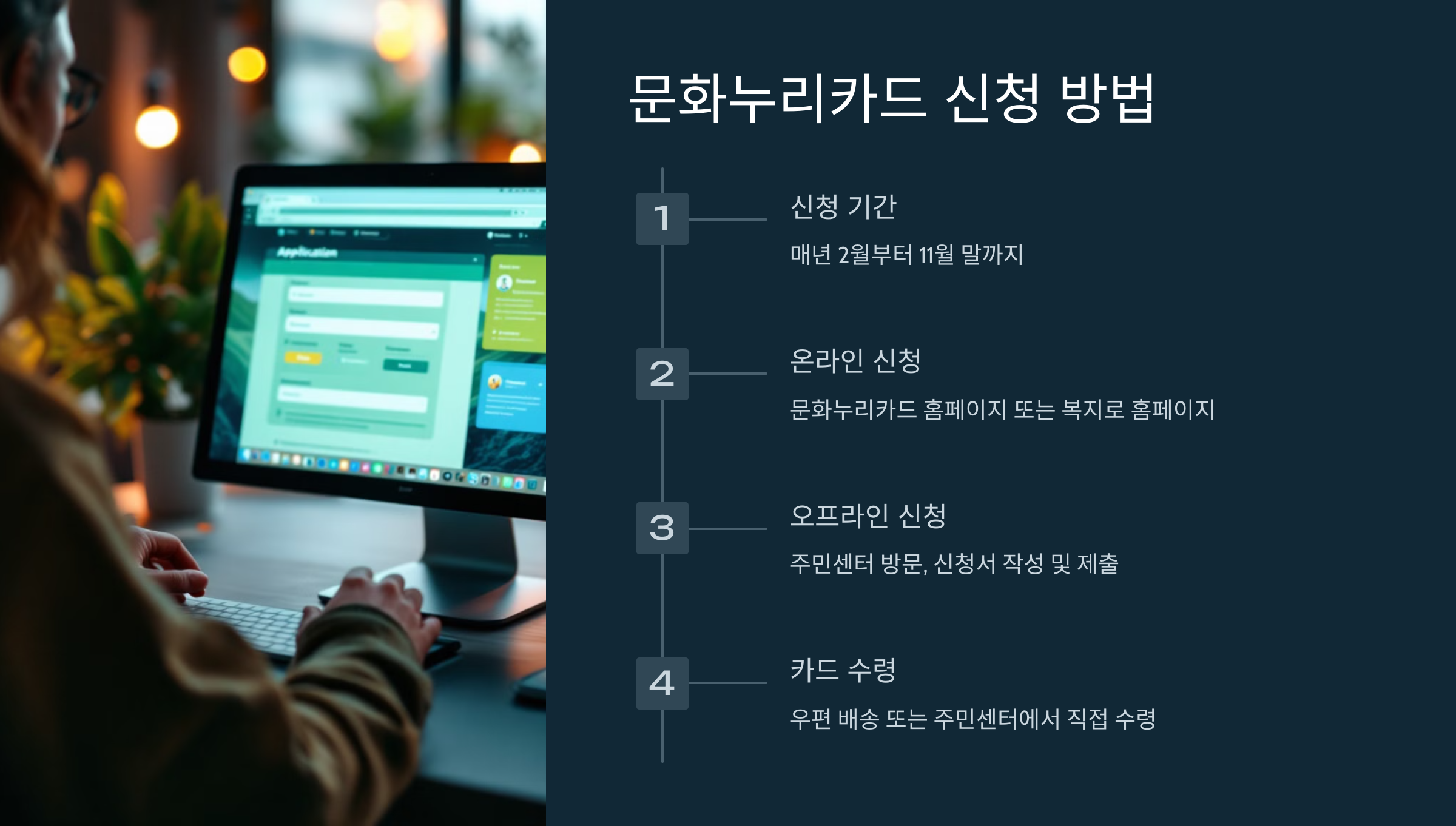 문화누리카드는 온라인과 오프라인을 통해 간편하게 신청할 수 있습니다. 신청 과정부터 필요한 서류, 발급 절차까지 상세히 설명드립니다.