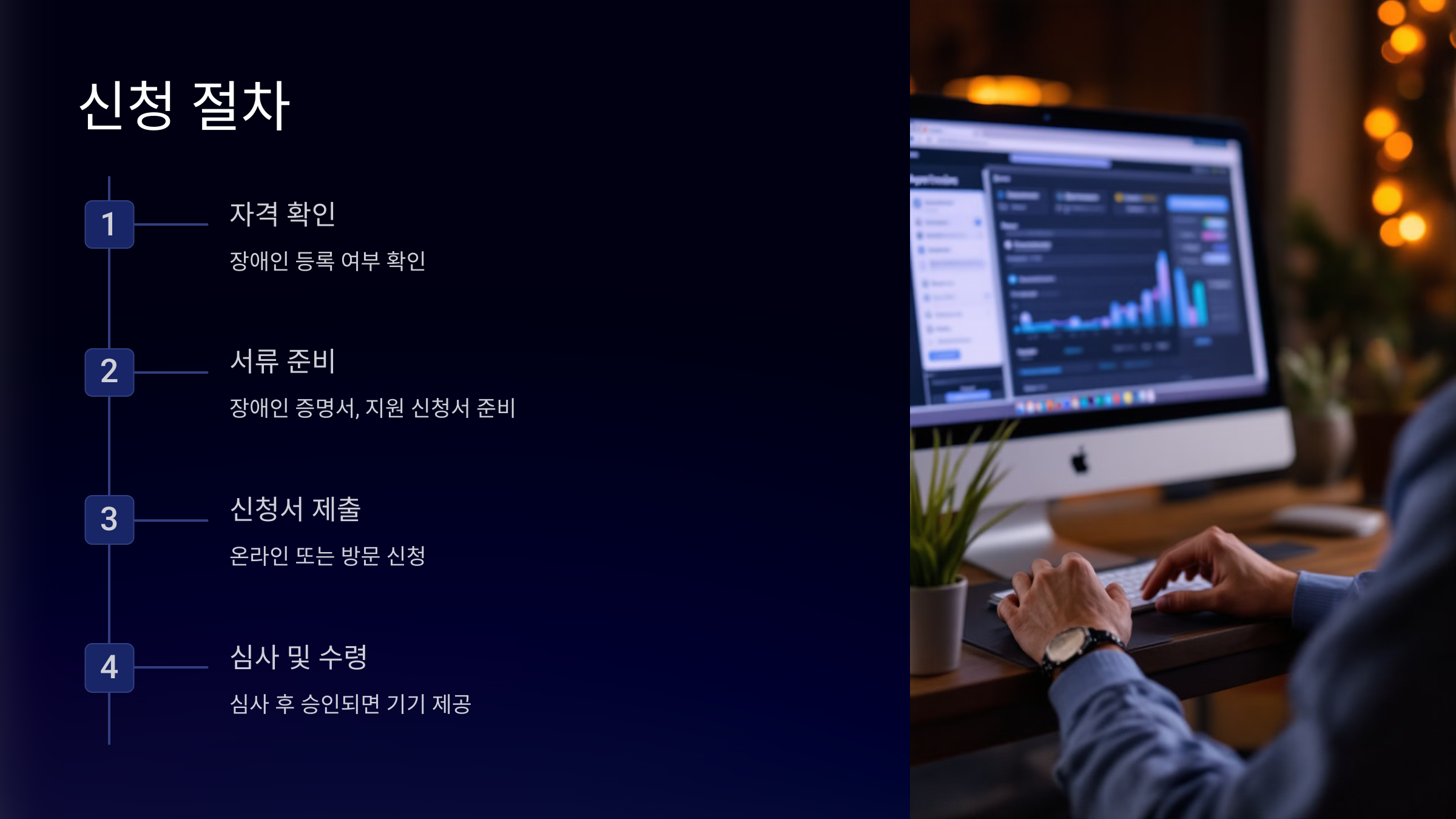 보조공학기기지원을 받기 위해서는 몇 가지 간단한 절차를 따라야 해요. 누구든지 이 서비스를 쉽게 신청할 수 있도록 도와주는 절차가 마련되어 있습니다.