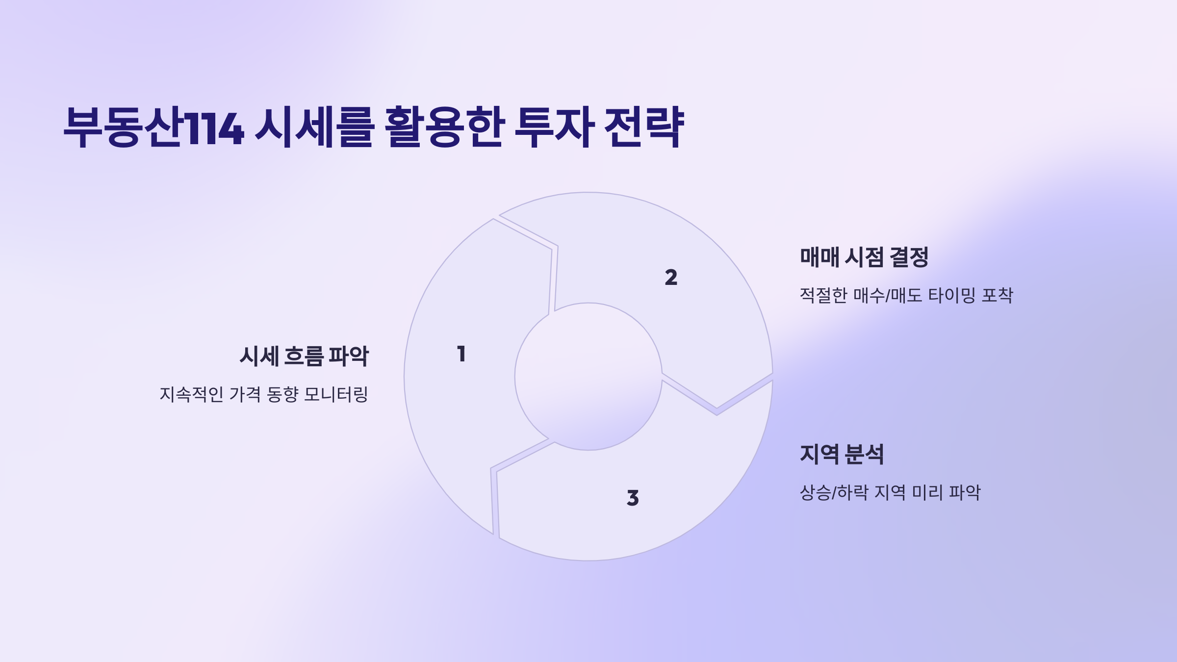 부동산114 시세 정보를 활용하면, 투자자의 시세 흐름을 파악하여 적합한 매매 시점을 잡을 수 있습니다. 예를 들어, 가격 상승세가 강한 지역을 미리 파악해 매입하거나, 하락세가 지속되는 지역에서 매도 결정을 내리는 전략을 취할 수 있습니다.
