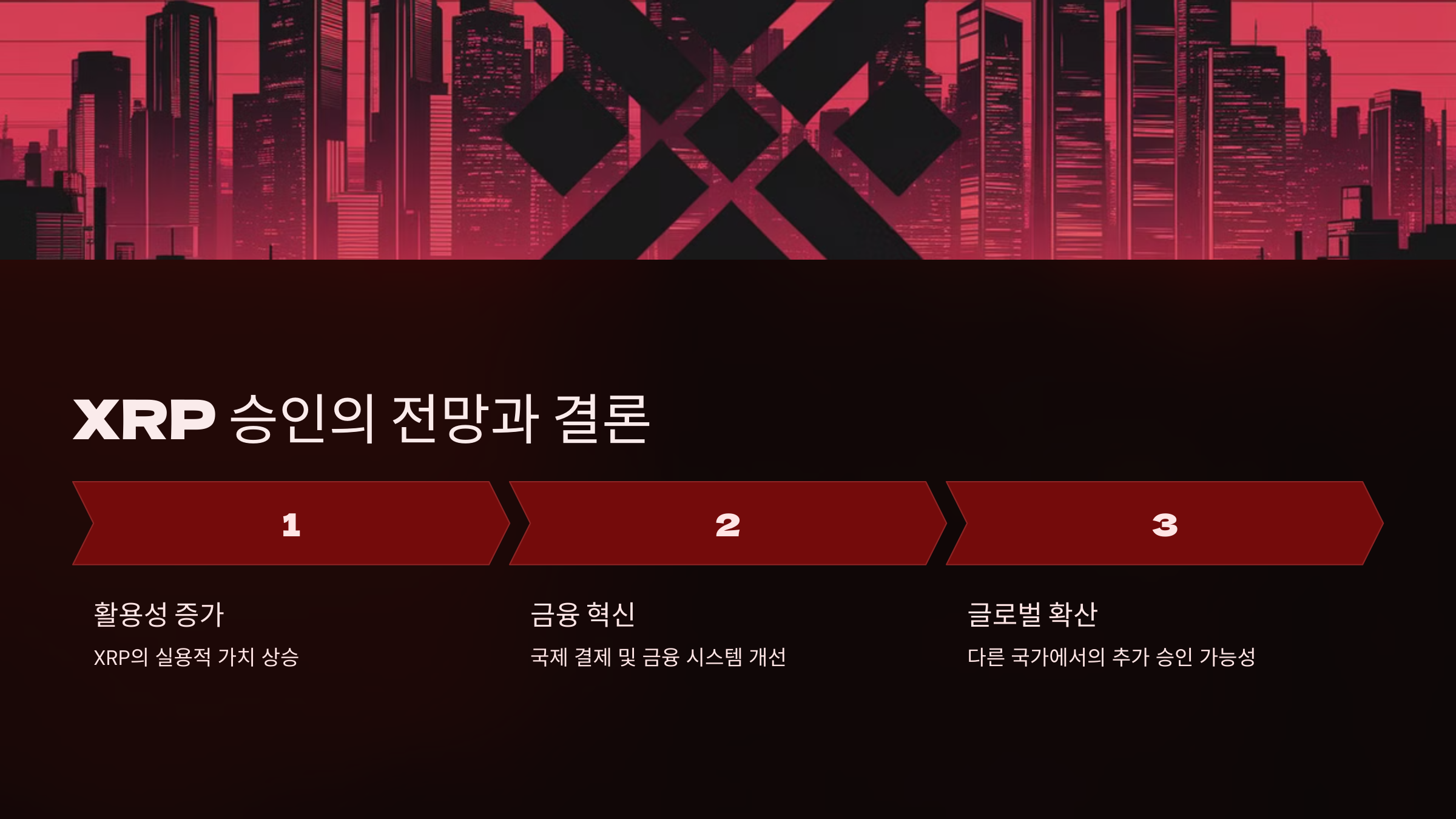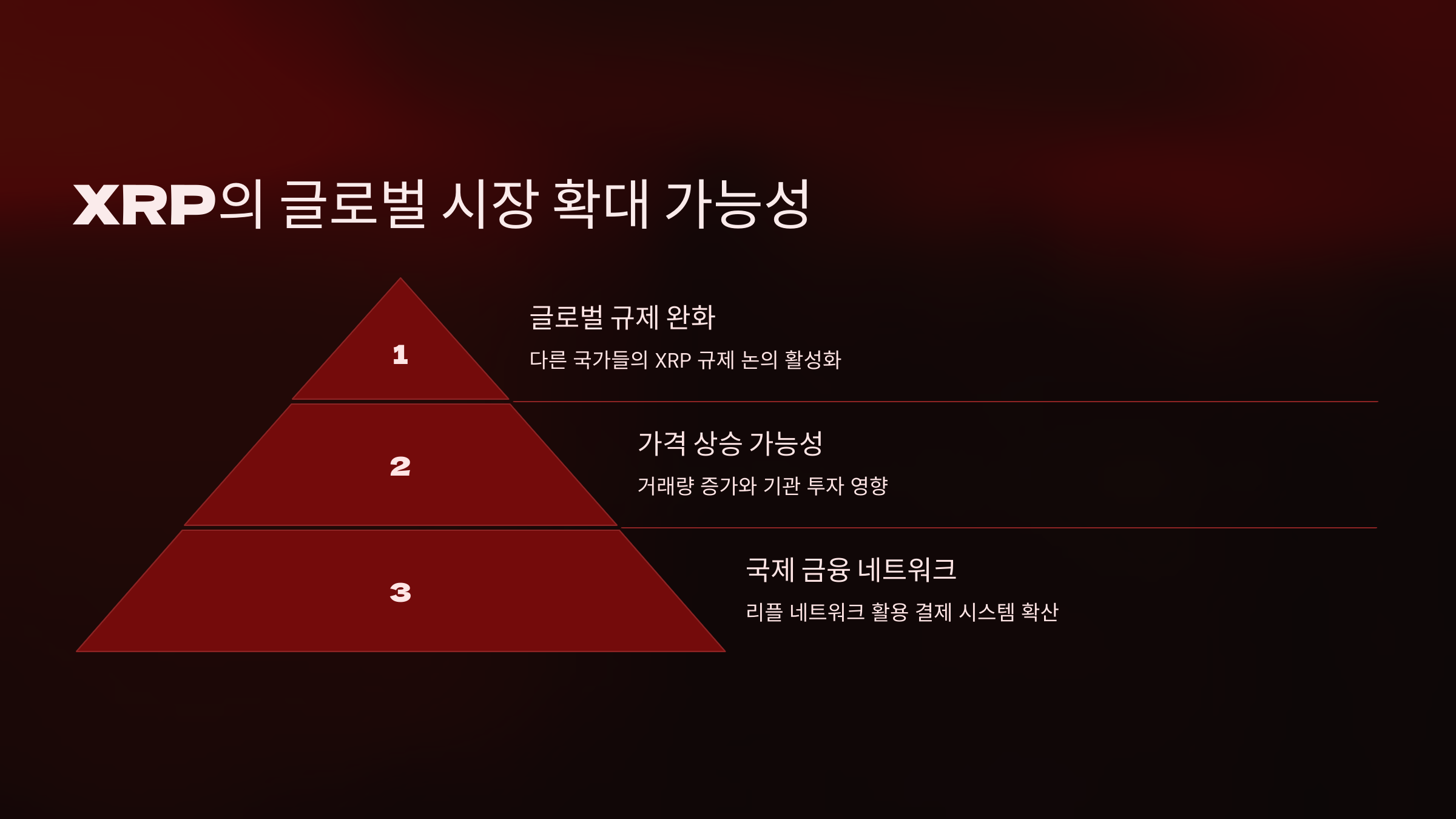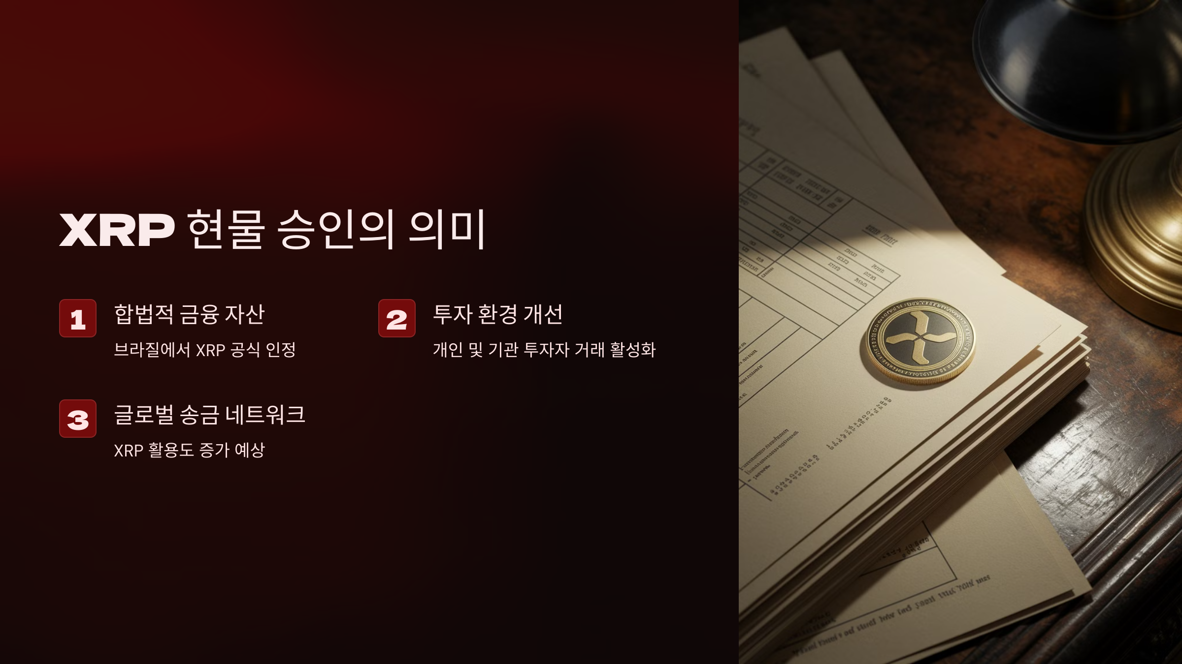 브라질의 XRP 현물 승인은 단순히 한 국가에서의 승인에 그치는 것이 아니라, 글로벌 시장에도 긍정적인 신호를 보낼 수 있습니다.