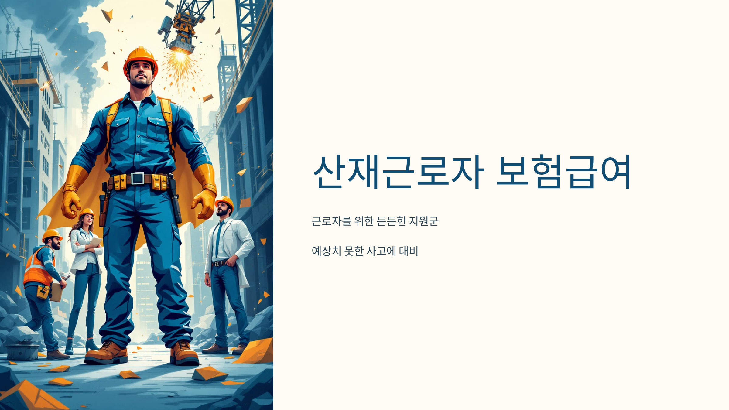 산재보험은 근로자가 일터에서 사고나 질병으로 힘들어할 때 손을 내미는 복지의 신입니다. 마치 영화 속에서 갑자기 나타나는 슈퍼히어로처럼요. 우리의 몸이 고장 나면 어떻게 될까요? 의료비는 끔찍하게 쌓여가고, 치료 받으러 병원에 가는 것도 부담스럽죠. 이럴 때 보험급여가 있다면 걱정 없는 치료를 받을 수 있습니다. 그러니 안전하게 일하는 것은 물론, 보험도 꼭 가입해두세요!