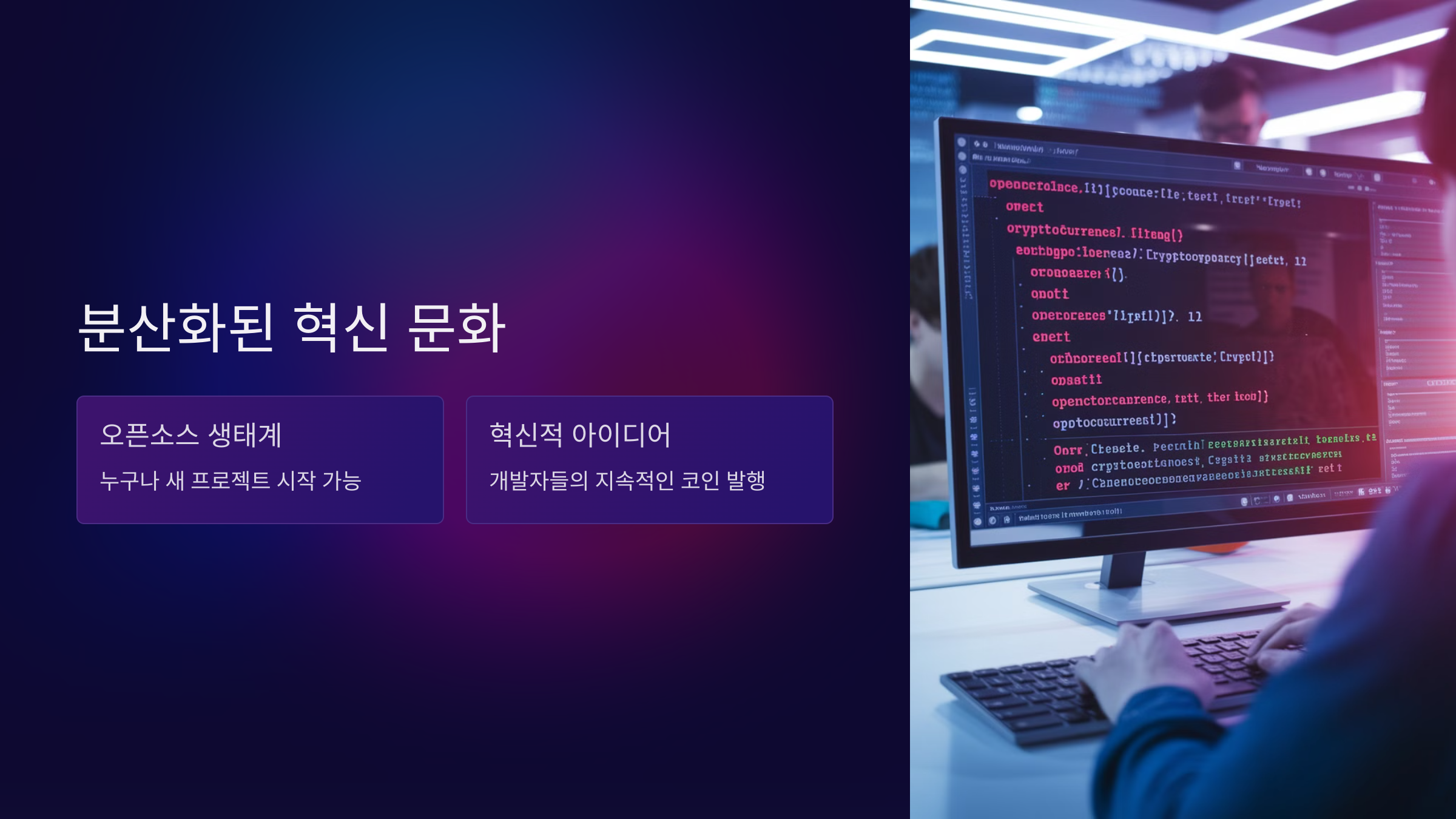 - 오픈소스 생태계: 암호화폐 및 블록체인 기술은 대부분 오픈소스입니다. 누구나 기존 기술을 활용하여 새로운 프로젝트를 만들 수 있기 때문에, 혁신적인 아이디어를 실현하려는 개발자들이 계속 새로운 코인을 발행하고 있습니다.