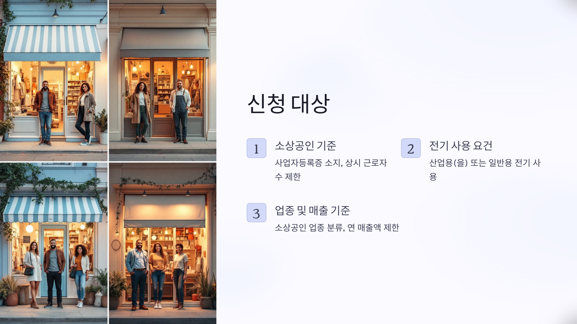 소상공인 전기요금 특별지원: 신청 대상 상세 안내