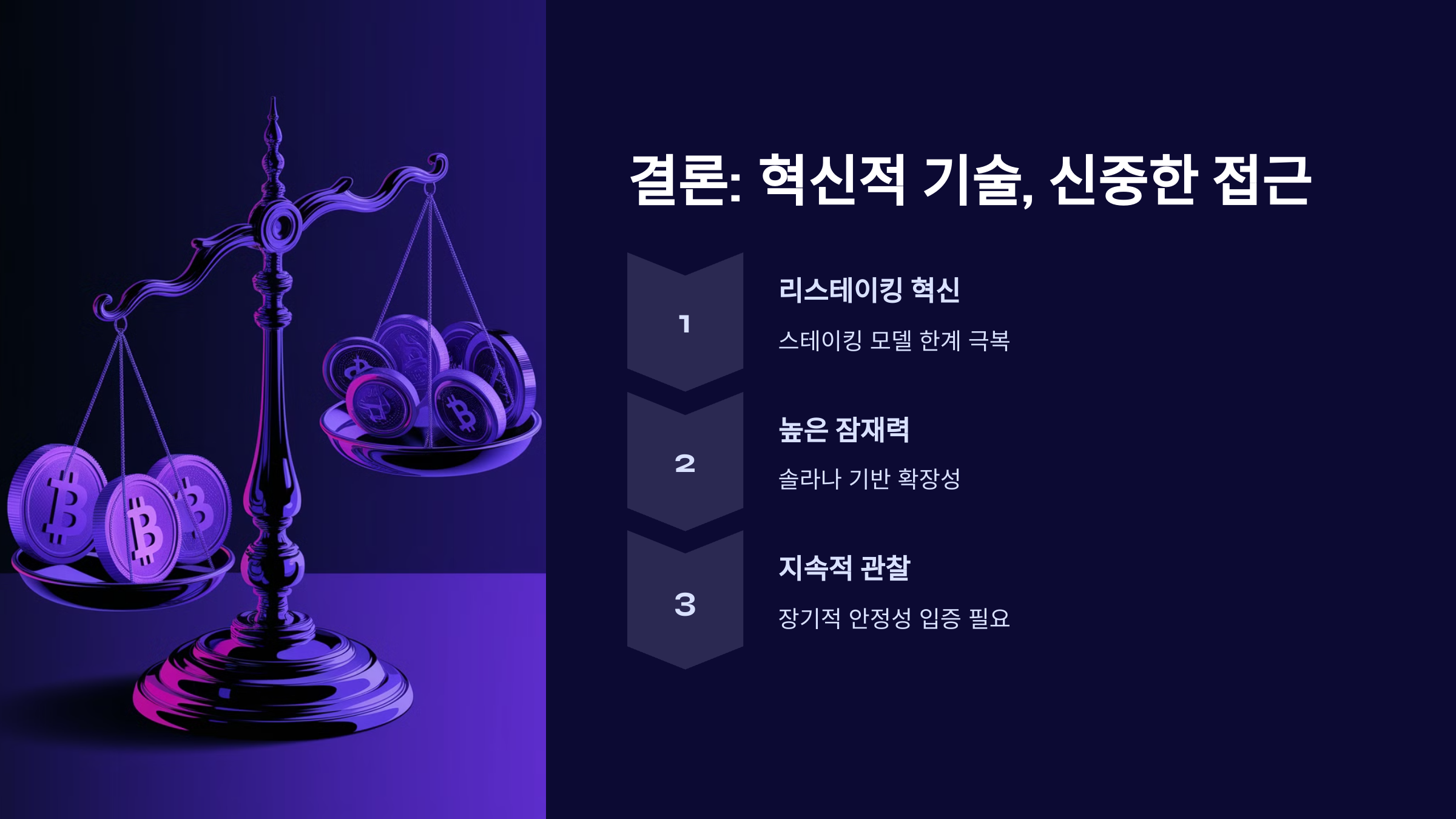 현재 암호화폐 시장에서는 단순한 스테이킹보다 더 높은 활용성을 제공하는 모델이 주목받고 있습니다. 리스테이킹을 도입한 솔레이어는 더 많은 투자자가 관심을 가질 가능성이 높으며, 새로운 트렌드로 자리 잡을 가능성이 큽니다.