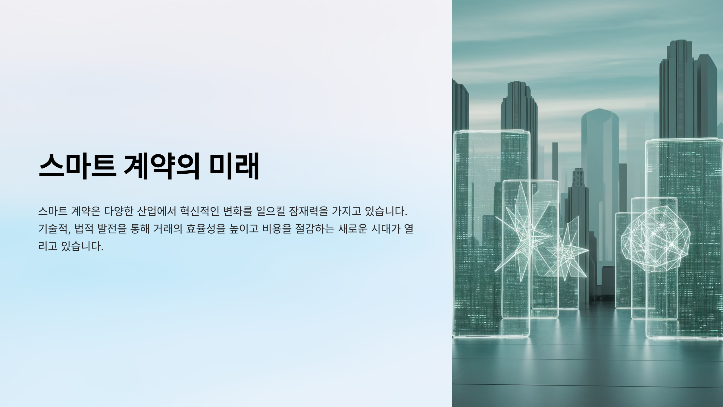 스마트 계약은 블록체인 기술을 활용하여 계약을 자동화하고, 중개 없이도 신뢰성 있는 거래를 가능하게 합니다. 이 기술은 다양한 산업에서 혁신적인 변화를 일으킬 잠재력을 가지고 있지만, 기술적 및 법적 측면에서의 발전이 필요합니다. 스마트 계약을 통해 거래의 효율성을 높이고, 비용을 절감하는 새로운 시대가 열리고 있습니다.