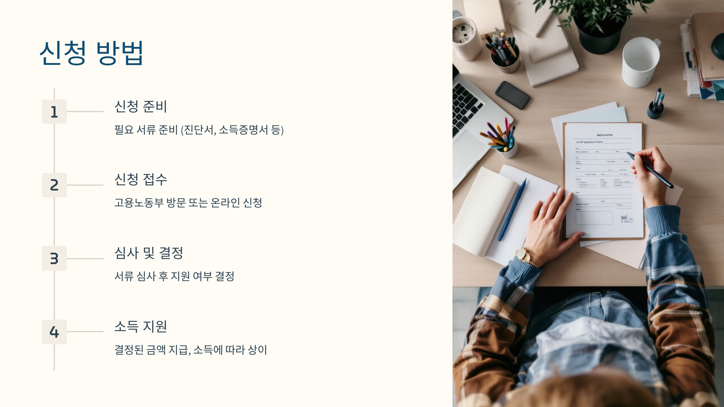- 신청 접수: 해당 지역의 고용노동부나 관련 기관에 방문하여 신청서를 제출합니다. 온라인 신청도 가능하니, 필요한 정보를 확인해보세요.