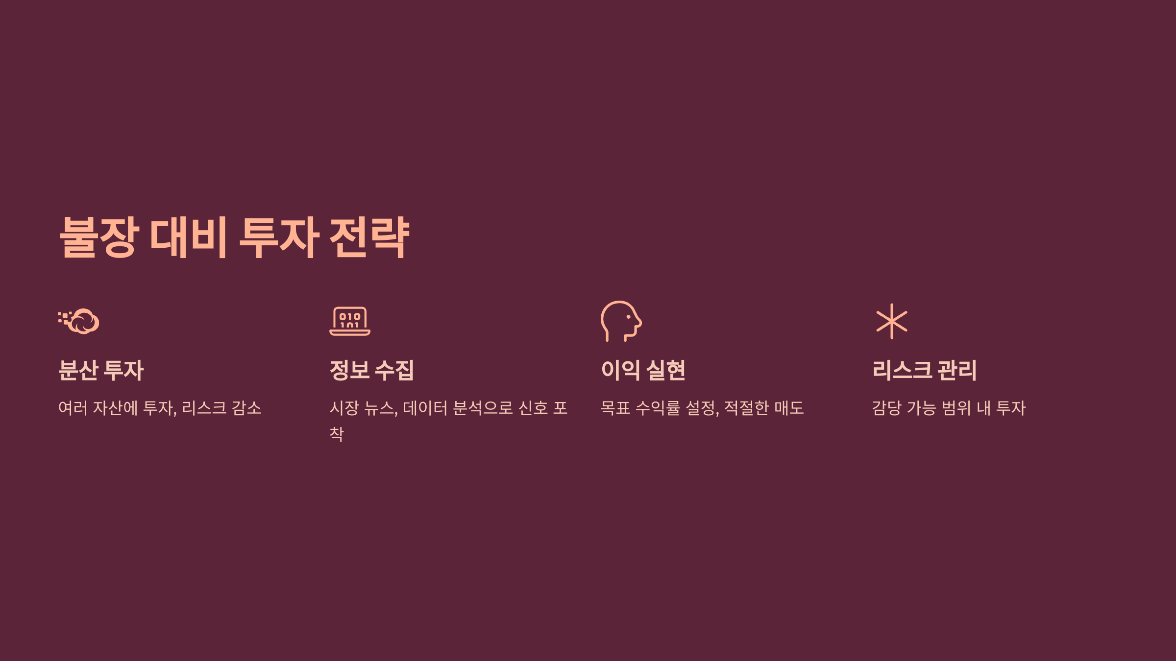 불장은 누구에게나 큰 기회지만, 준비되지 않은 투자자에게는 위험이 될 수도 있습니다. 아래 전략을 참고하세요.