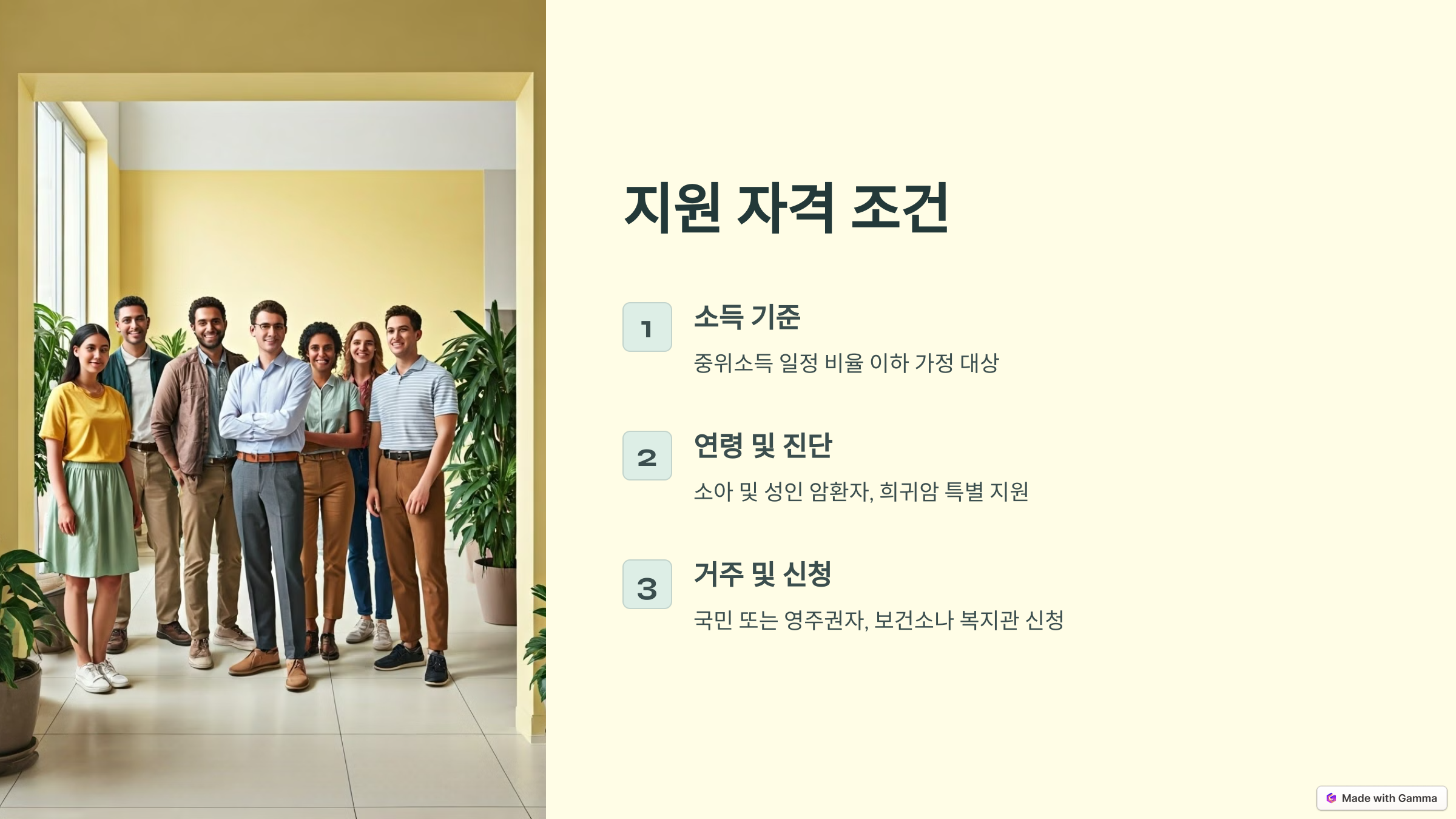 암 진단을 받은 환자가 대상이며, 소아암 및 특정 희귀암은 특별 지원을 받을 수 있습니다.