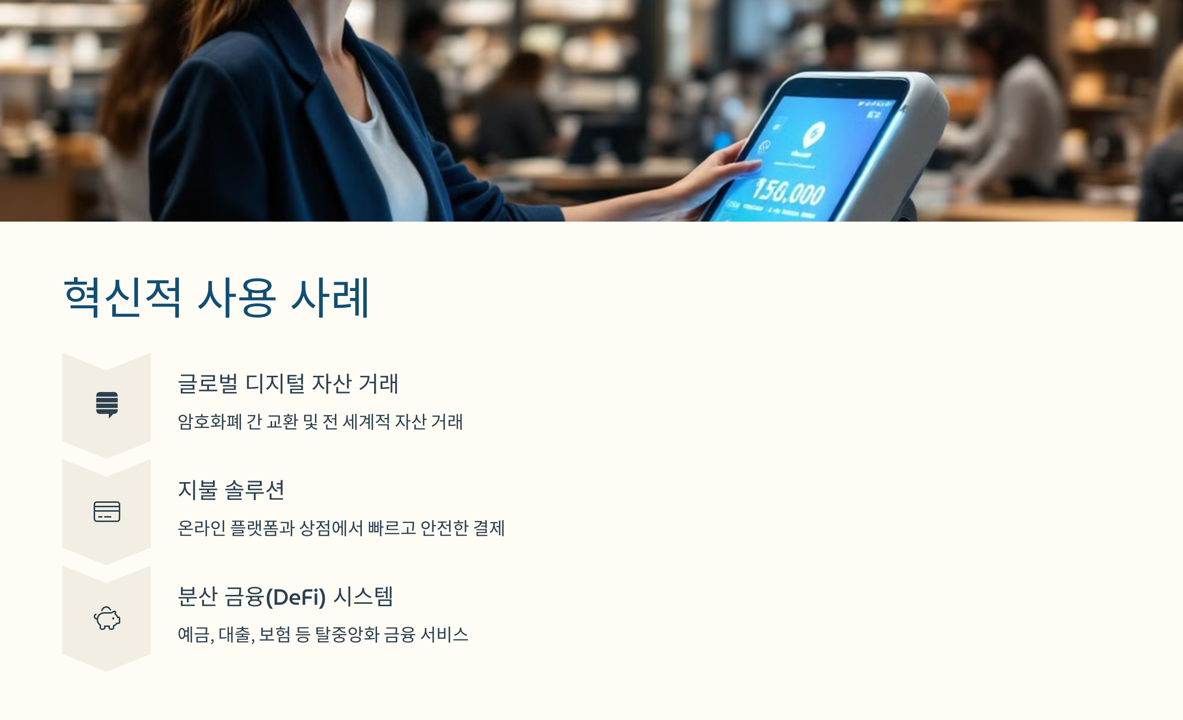 - 고도의 보안성: 스마트 계약과 암호화 기술을 통해 거래가 철저히 보호되며, 자산의 안전성을 보장합니다.