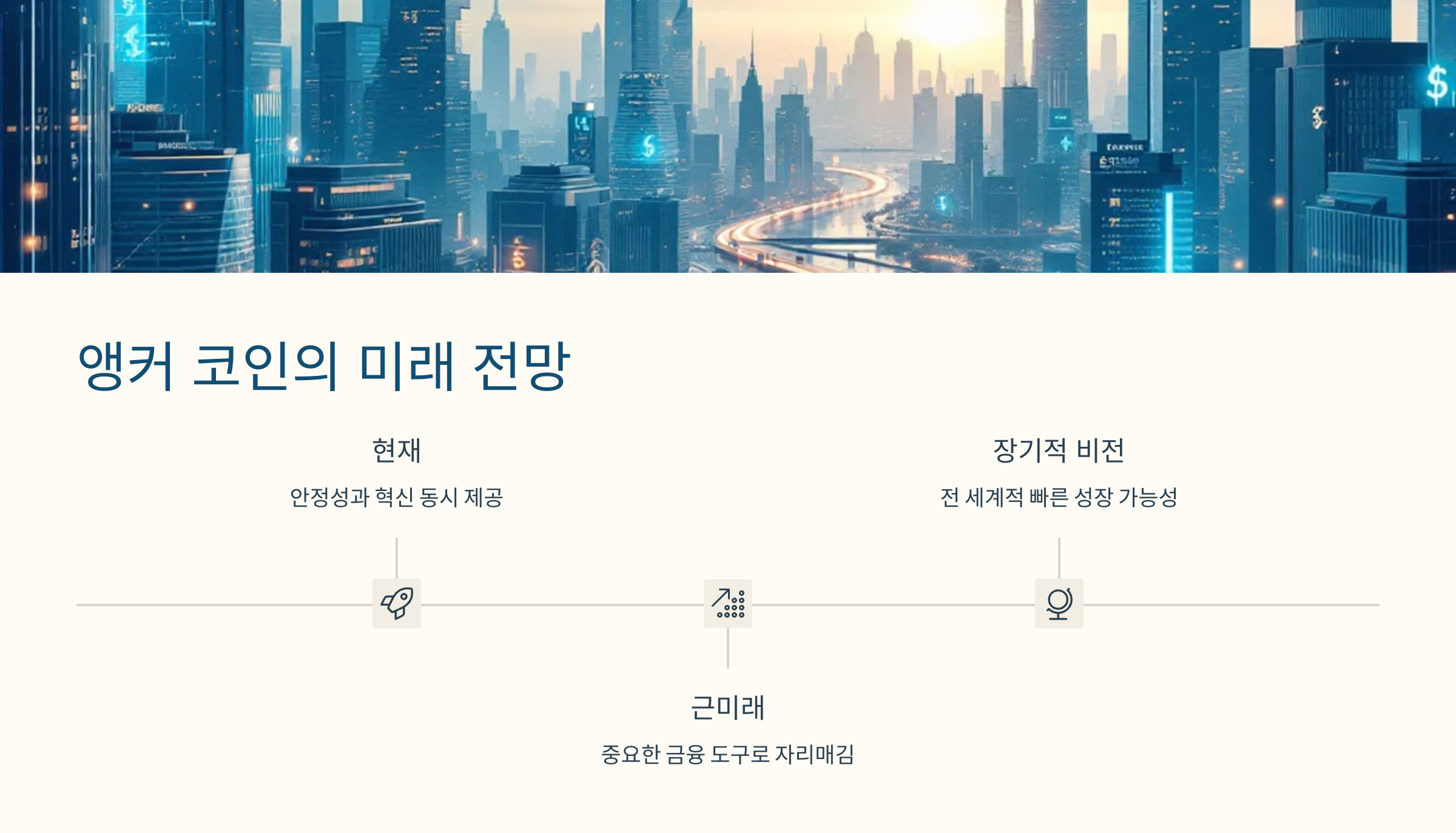 앵커 코인은 안정성과 혁신을 동시에 제공하며, 디지털 자산의 미래를 선도할 수 있는 잠재력을 지닌 스테이블코인입니다. 블록체인 기술의 진보와 함께, 앵커 코인은 앞으로 더욱 중요한 금융 도구로 자리잡을 것입니다. 투자자들에게는 새로운 금융의 문을 여는 기회를 제공하며, 전 세계적으로 빠르게 성장할 가능성을 내포하고 있습니다.