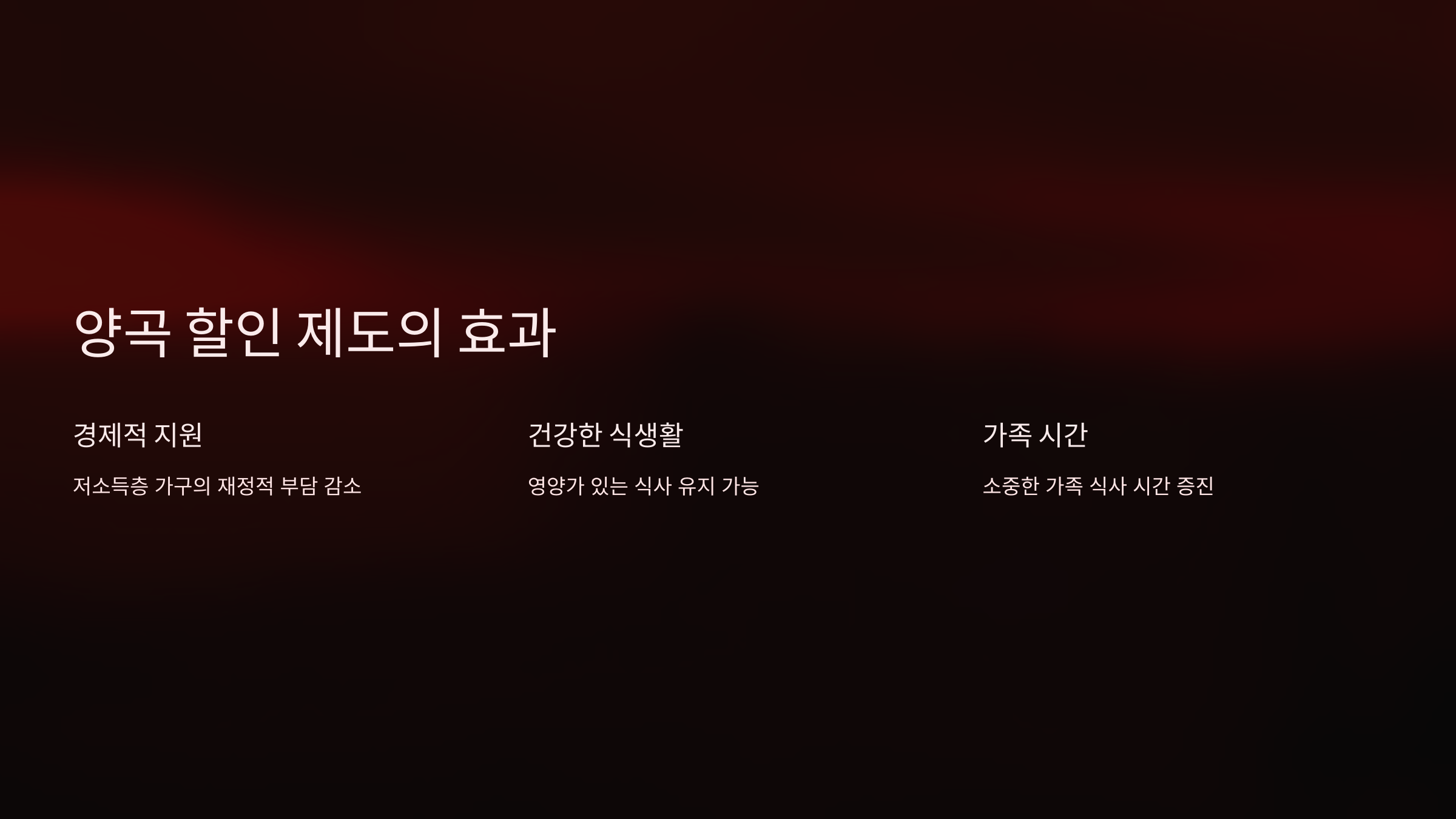 1. 양곡 할인, 우리의 식탁을 더욱 풍성하게