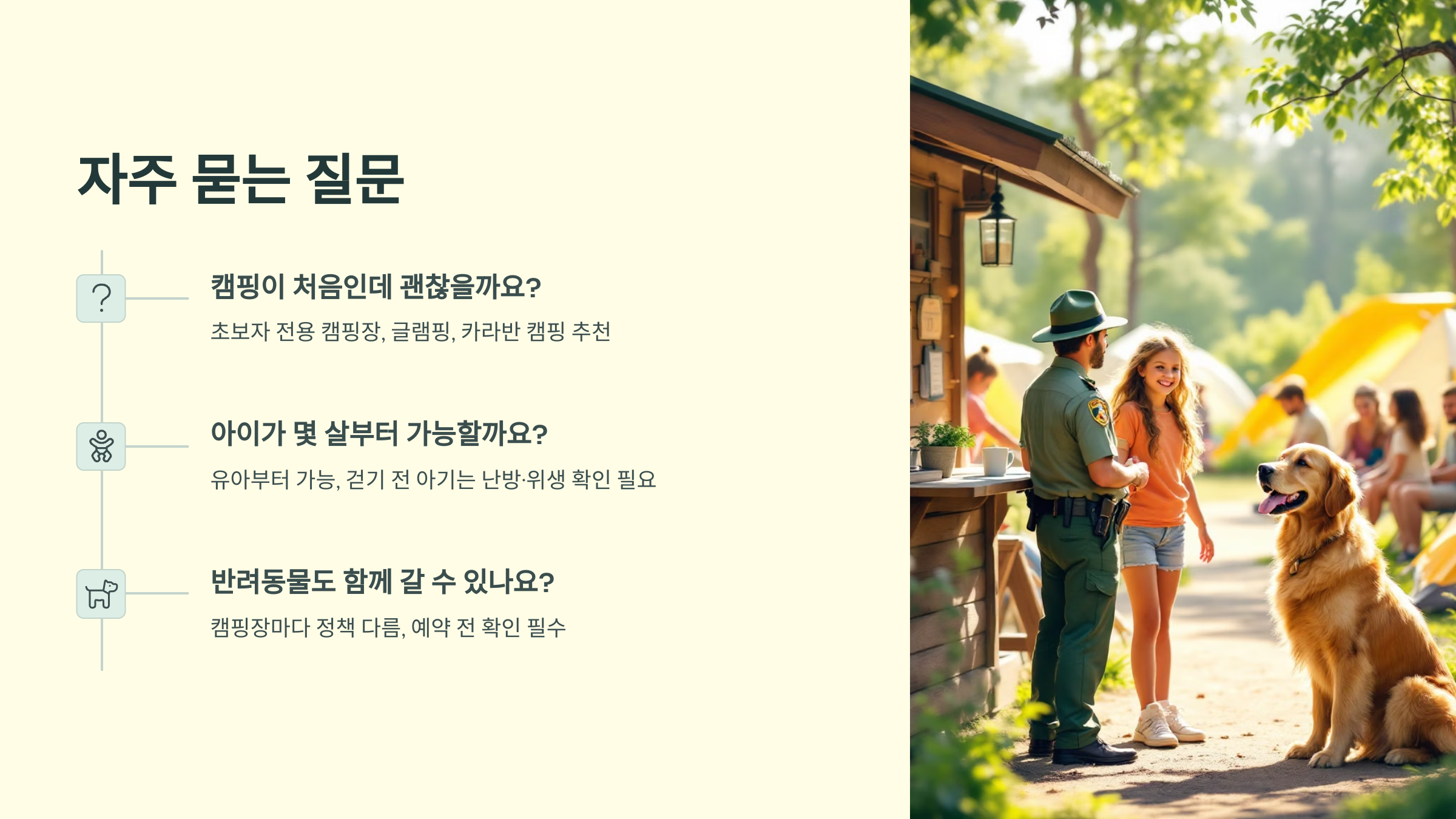 A. 네! 초보자 전용 캠핑장이나 글램핑, 카라반 캠핑을 먼저 이용해보는 것도 좋은 방법입니다.