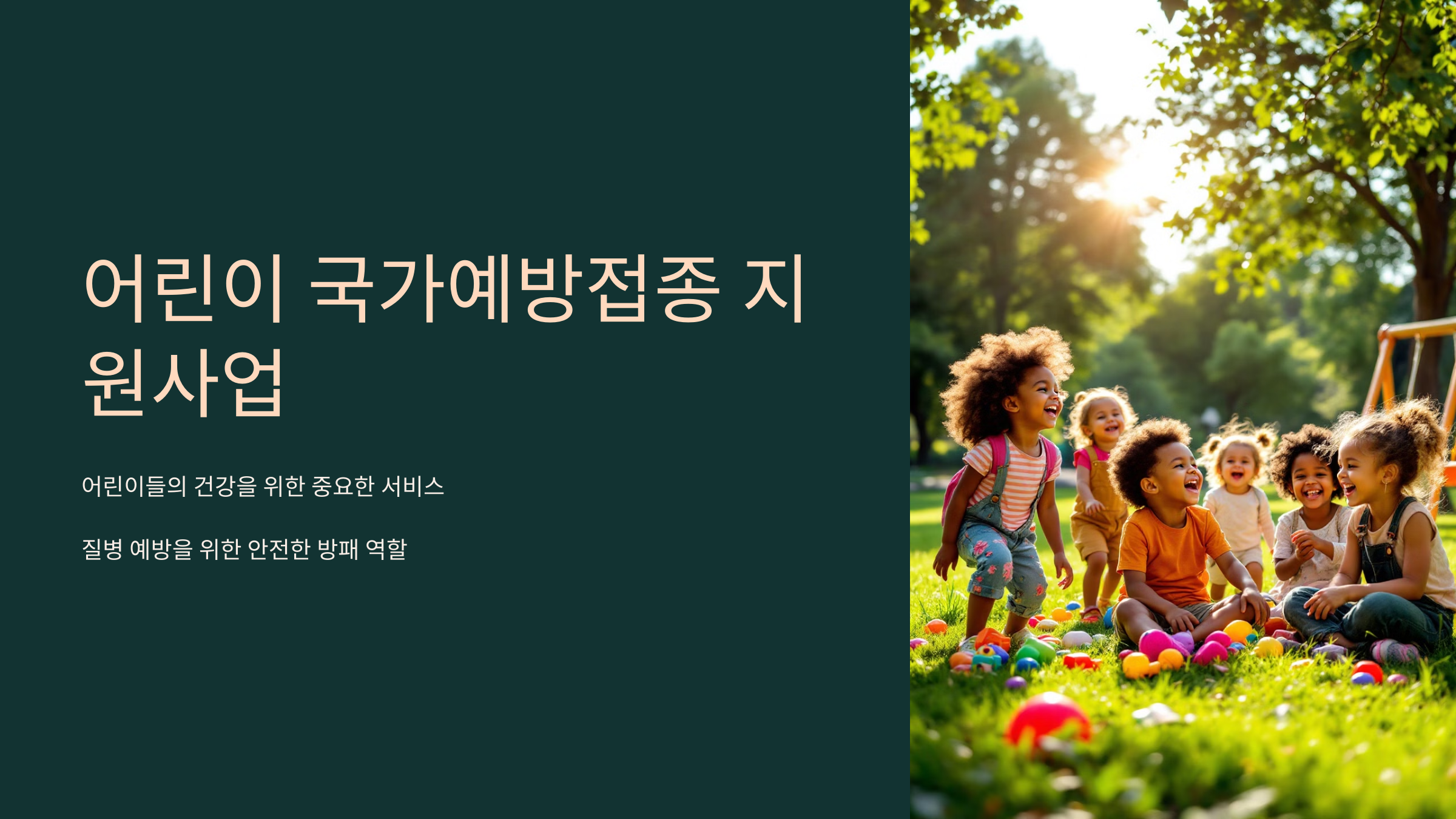 어린이 국가예방접종 지원사업은 우리 어린이들의 건강을 지키는 첫걸음이에요. 예방접종을 통해 다양한 병을 미리 막아둘 수 있으니 더 튼튼하게 자랄 수 있답니다. 그리고 친구들과 함께 놀고 공부할 때도 안심이 되니까 정말 중요해요