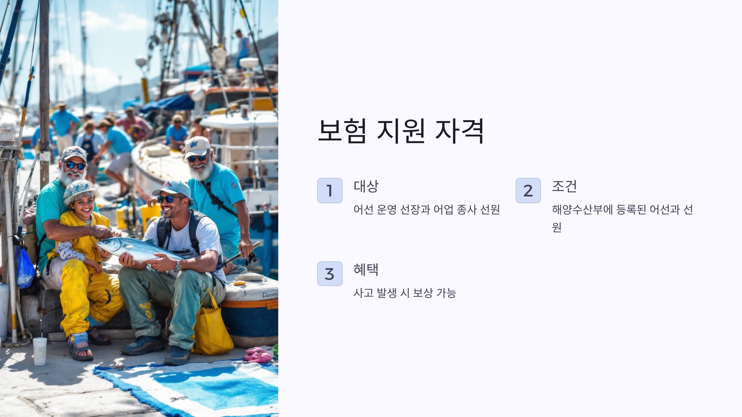 어선원 및 어선 재해보상보험의 지원 자격은 바다에서 일하는 어선원이라면 대부분 해당돼요. 구체적으로는, 어선을 운영하는 선장과 그 배에 탑승해 어업에 종사하는 모든 선원들이 가입 대상이에요. 만약 당신이 바다에서 조업하는 어선원이라면, 사고가 발생할 때 이 보험을 통해 보상을 받을 수 있어요. 또한, 해양수산부에 등록된 어선과 선원이 보험 혜택을 받을 수 있답니다.