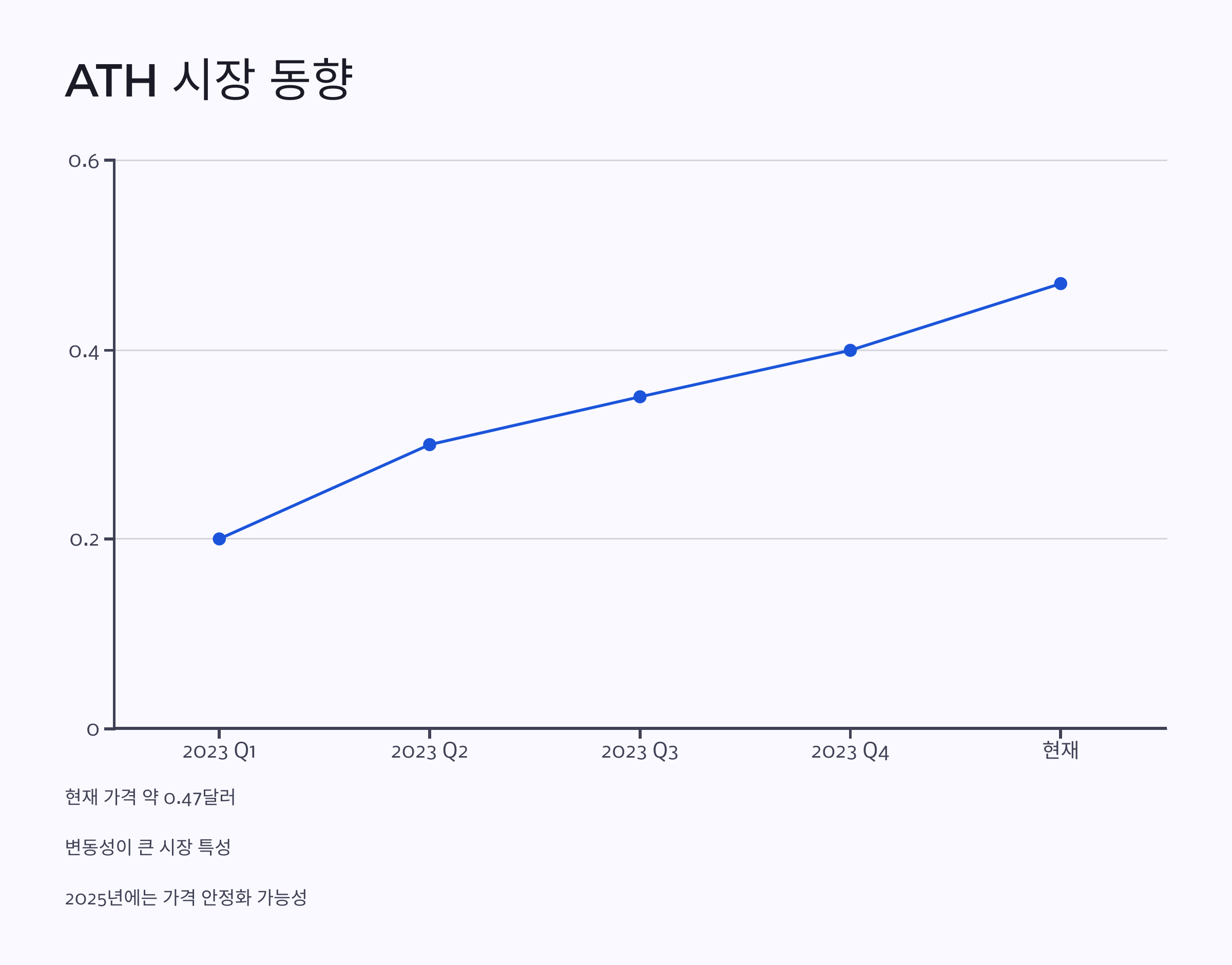 - 현재 ATH의 시장 가격은 약 0.47달러입니다. 가격은 암호화폐 시장의 변동성에 따라 달라질 수 있으므로, 지속적인 모니터링이 필요합니다.