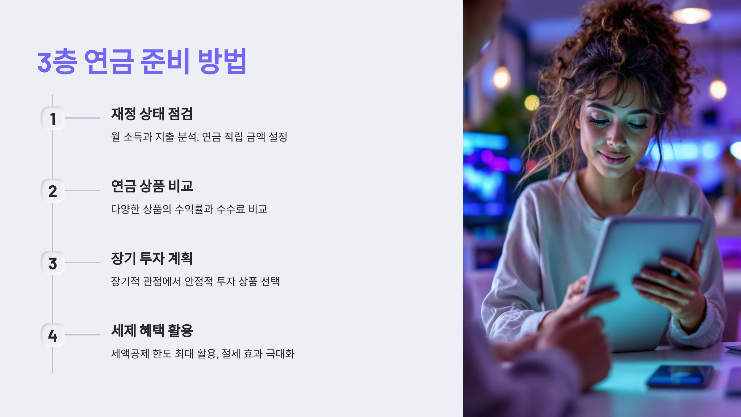 효율적으로 3층 연금을 준비하려면 다음을 고려해야 합니다: