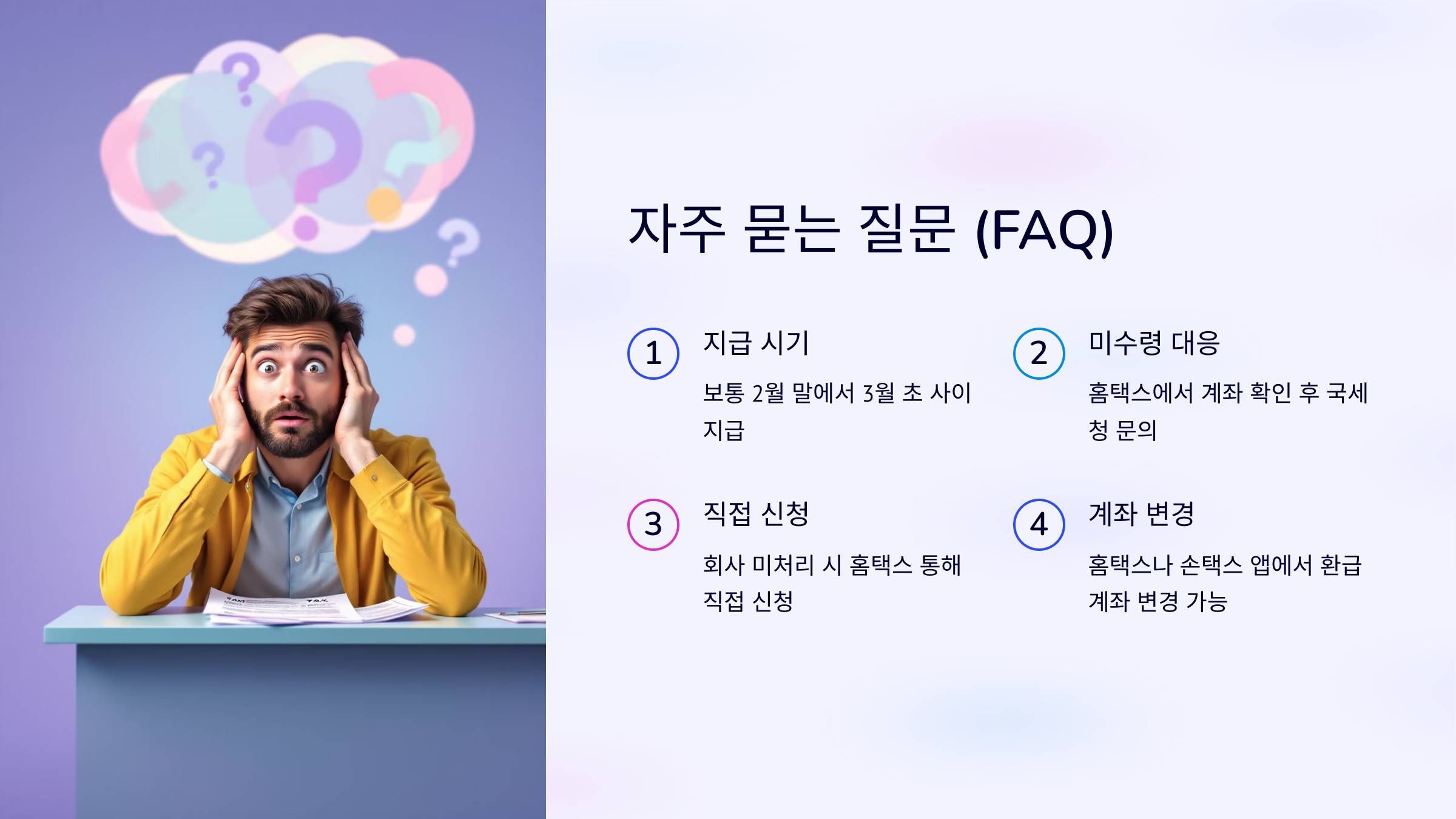 - 계좌 변경이 필요한 경우 반드시 홈택스에서 수정해야 합니다.
