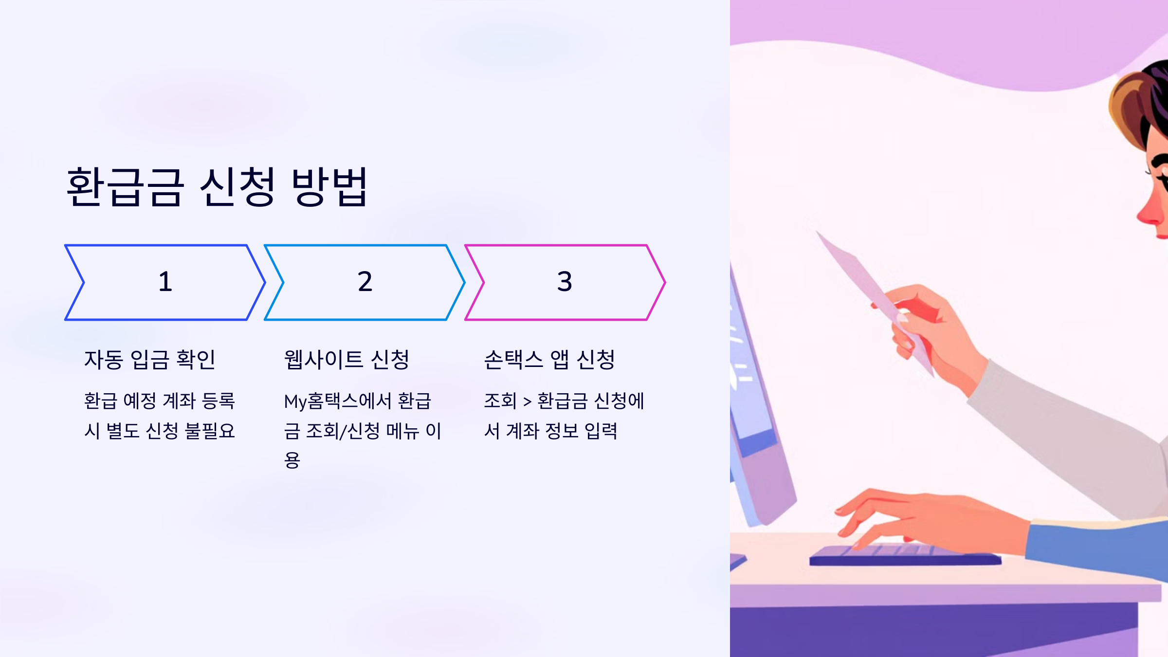 - 본인이 홈택스를 통해 직접 환급 신청을 할 수 있습니다.