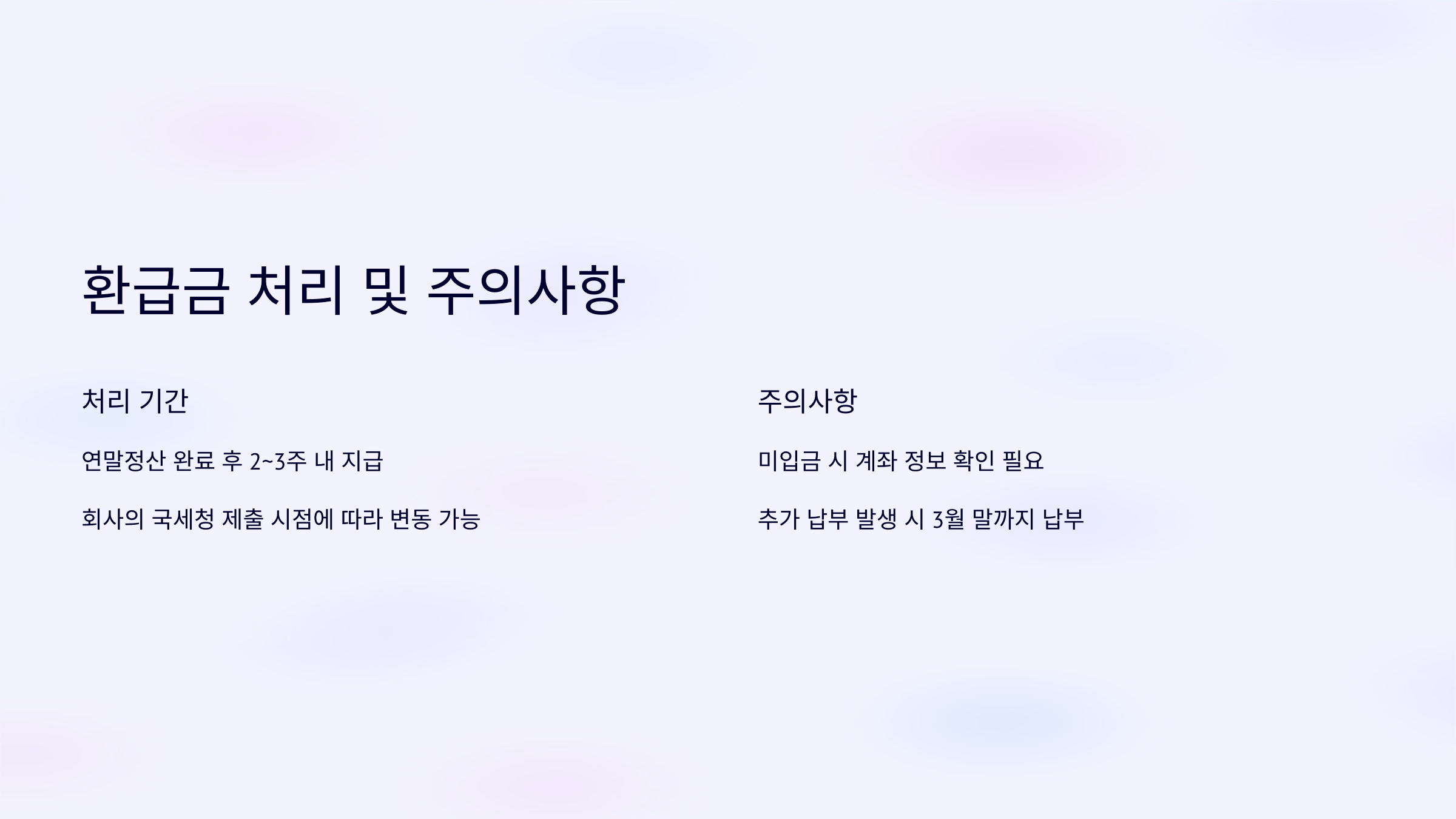 - 연말정산 완료 후 약 2~3주 내에 지급.