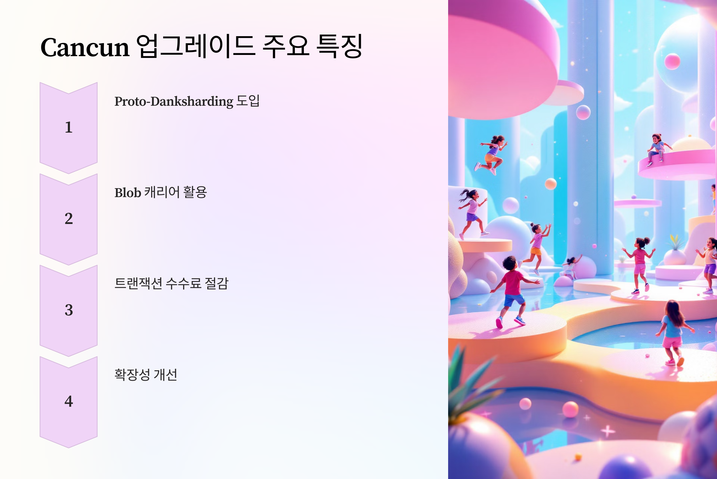 - Cancun은 기술적 발전을 통해 네트워크의 확장성과 비용 효율성을 크게 높이고 있습니다.
