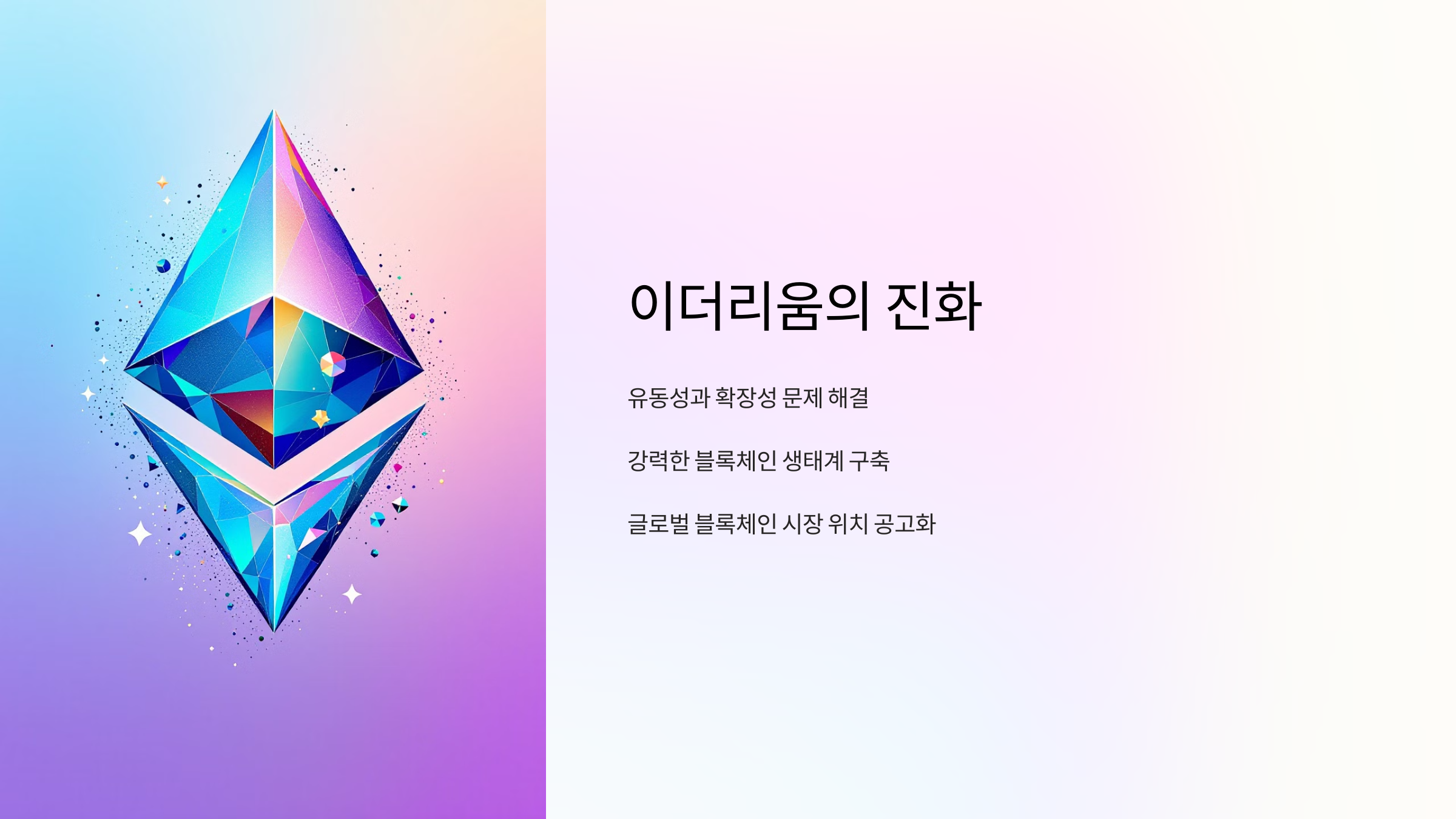 이더리움은 단순한 암호화폐를 넘어, 블록체인 기술의 미래를 이끌어가는 플랫폼입니다. 2024년에도 이더리움의 혁신은 멈추지 않으며, 생태계는 더욱 다양화되고 확장되고 있습니다. 앞으로도 이더리움이 만들어갈 새로운 변화와 기회를 기대하며, 이 혁신의 중심에 함께해보세요.