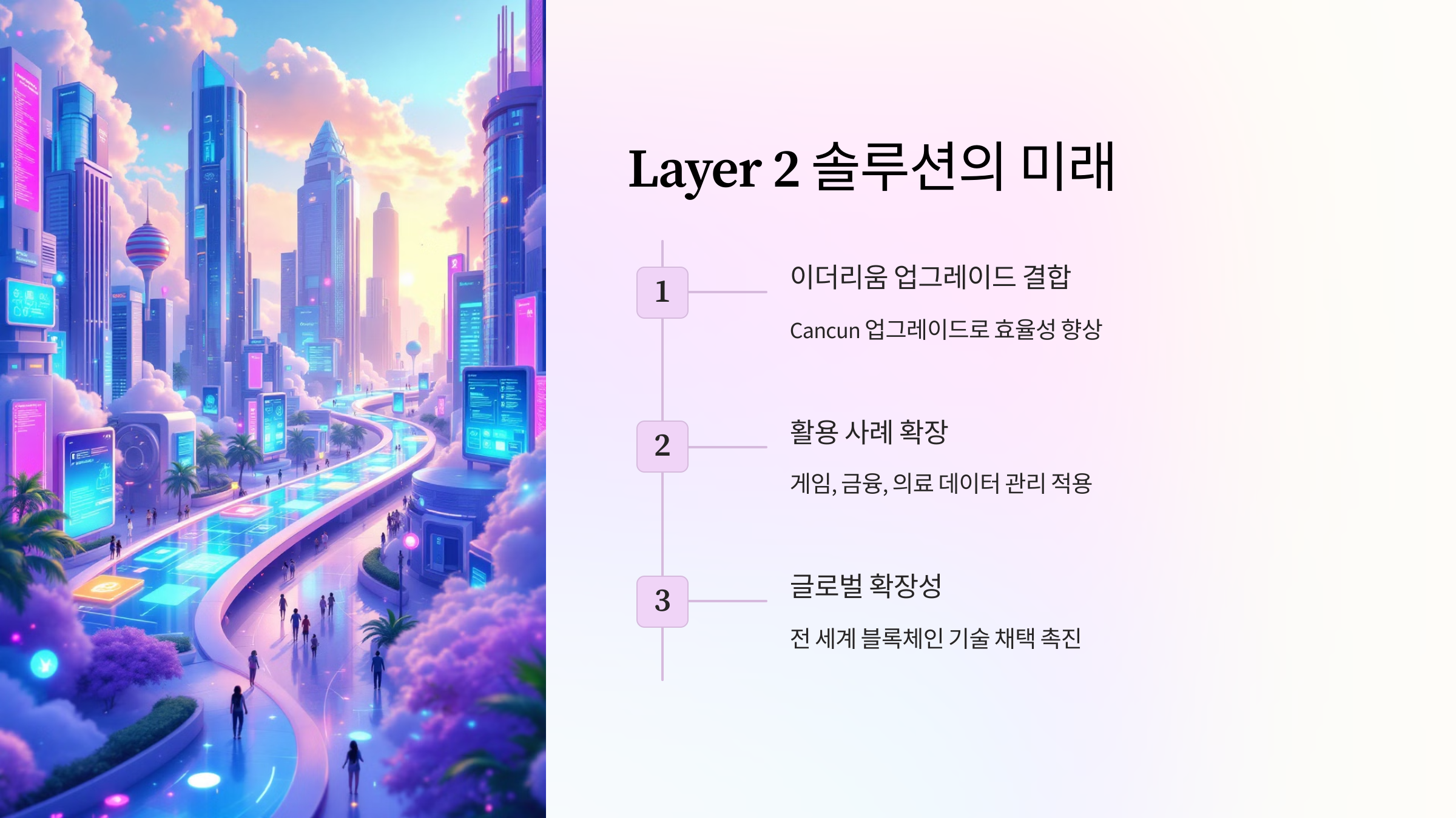 Layer 2는 게임, 금융, 의료 데이터 관리 등 더 많은 산업 분야에 적용될 가능성이 있습니다.