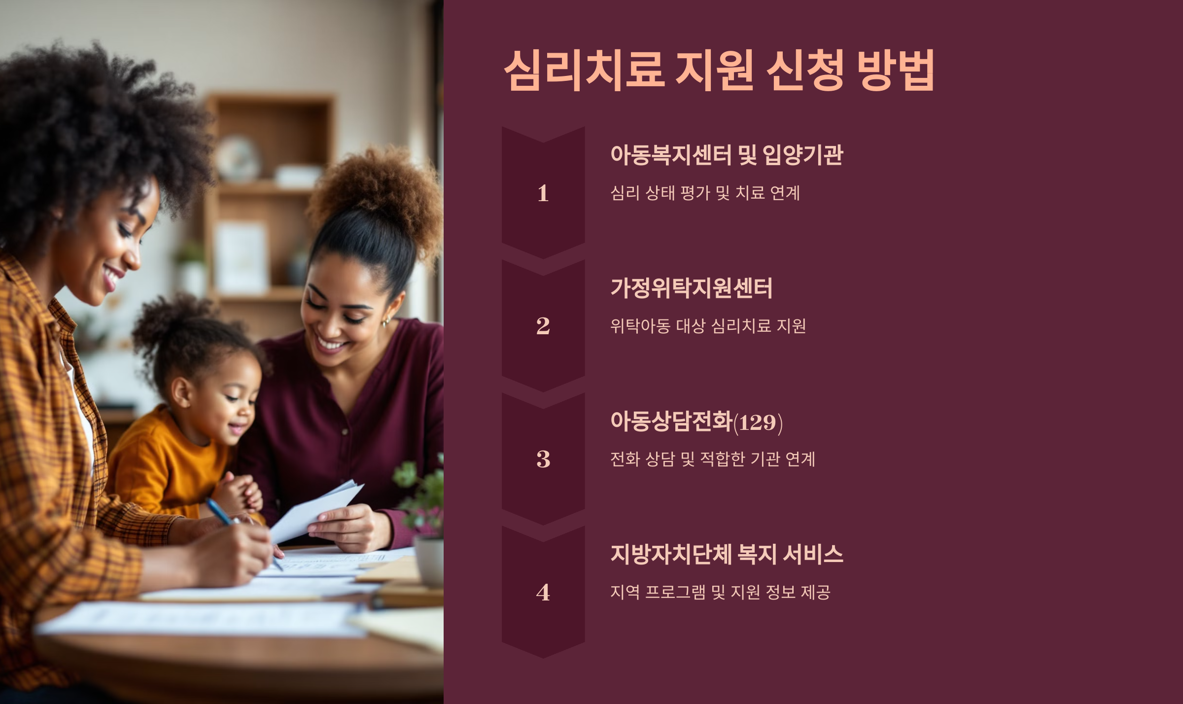 입양아동과 위탁아동이 심리치료를 지원받기 위해서는 몇 가지 간단한 절차를 통해 신청할 수 있습니다. 국가와 지역 복지기관에서는 이러한 아동들의 심리적 안정을 돕기 위한 지원 프로그램을 운영하고 있으며, 편리하게 신청할 수 있습니다.