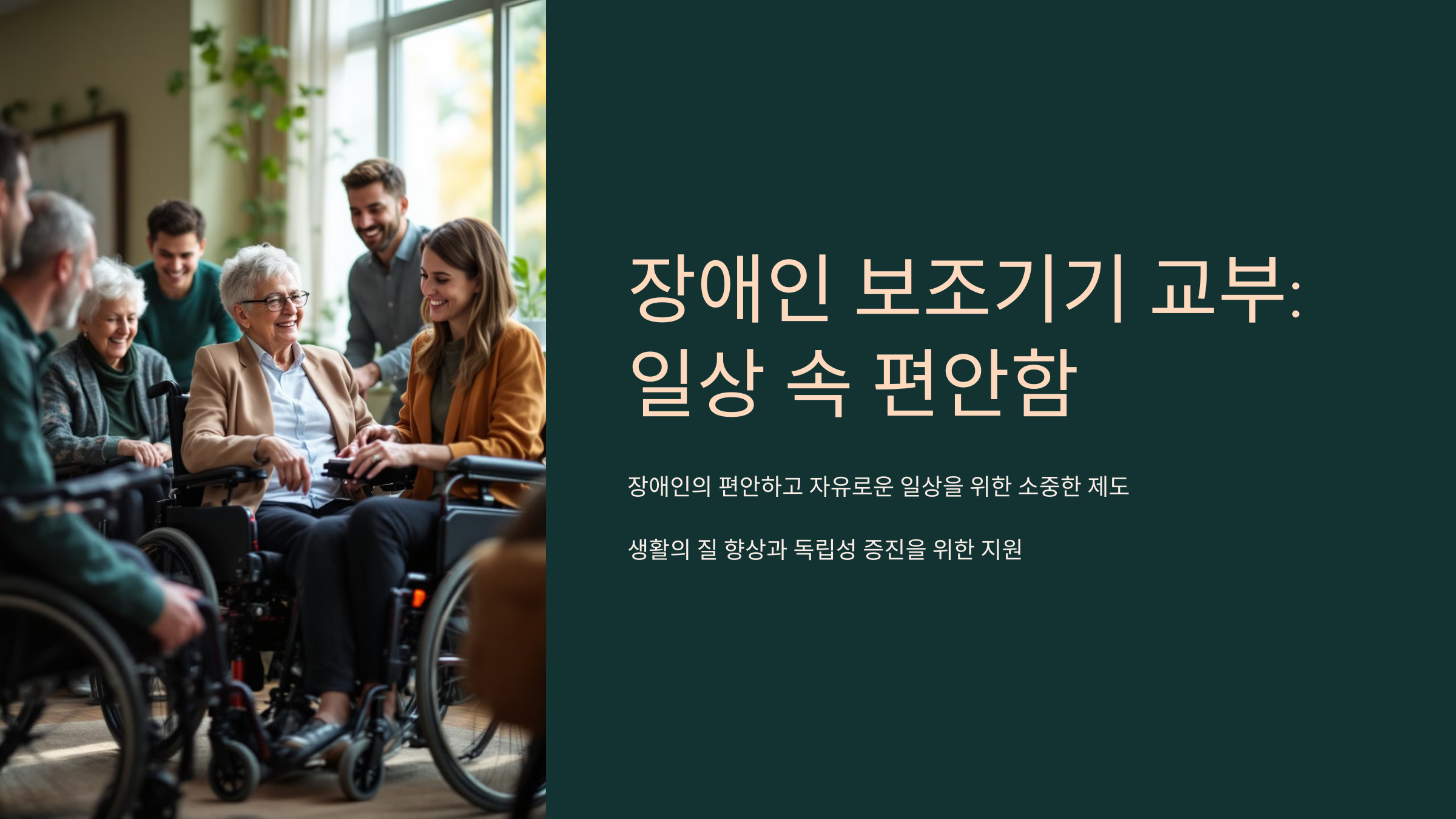 장애인 보조기기 교부는 장애인분들이 더 큰 자유와 편안함 속에서 자신의 생활을 주체적으로 누릴 수 있도록 돕는 따뜻한 지원 제도입니다. 여러 형태의 보조기기를 통해 장애로 인한 불편을 줄이고, 보다 행복하고 안전한 일상을 만들어 가실 수 있도록 하는 이 제도가 많은 분들에게 큰 힘이 되기를 바랍니다. 앞으로도 장애인 보조기기 교부가 여러분의 곁에서 든든한 도움의 손길이 되기를 기원합니다.