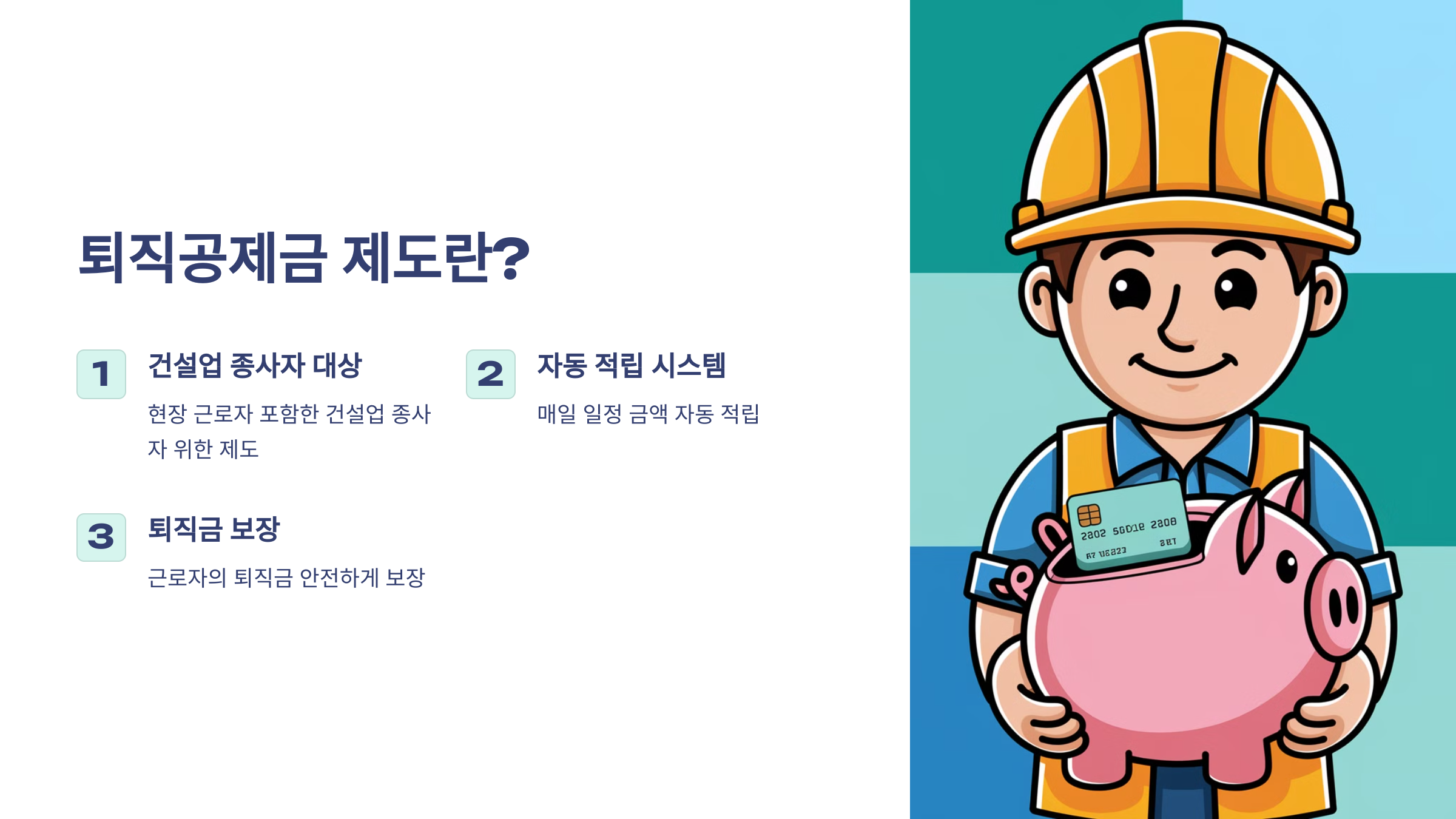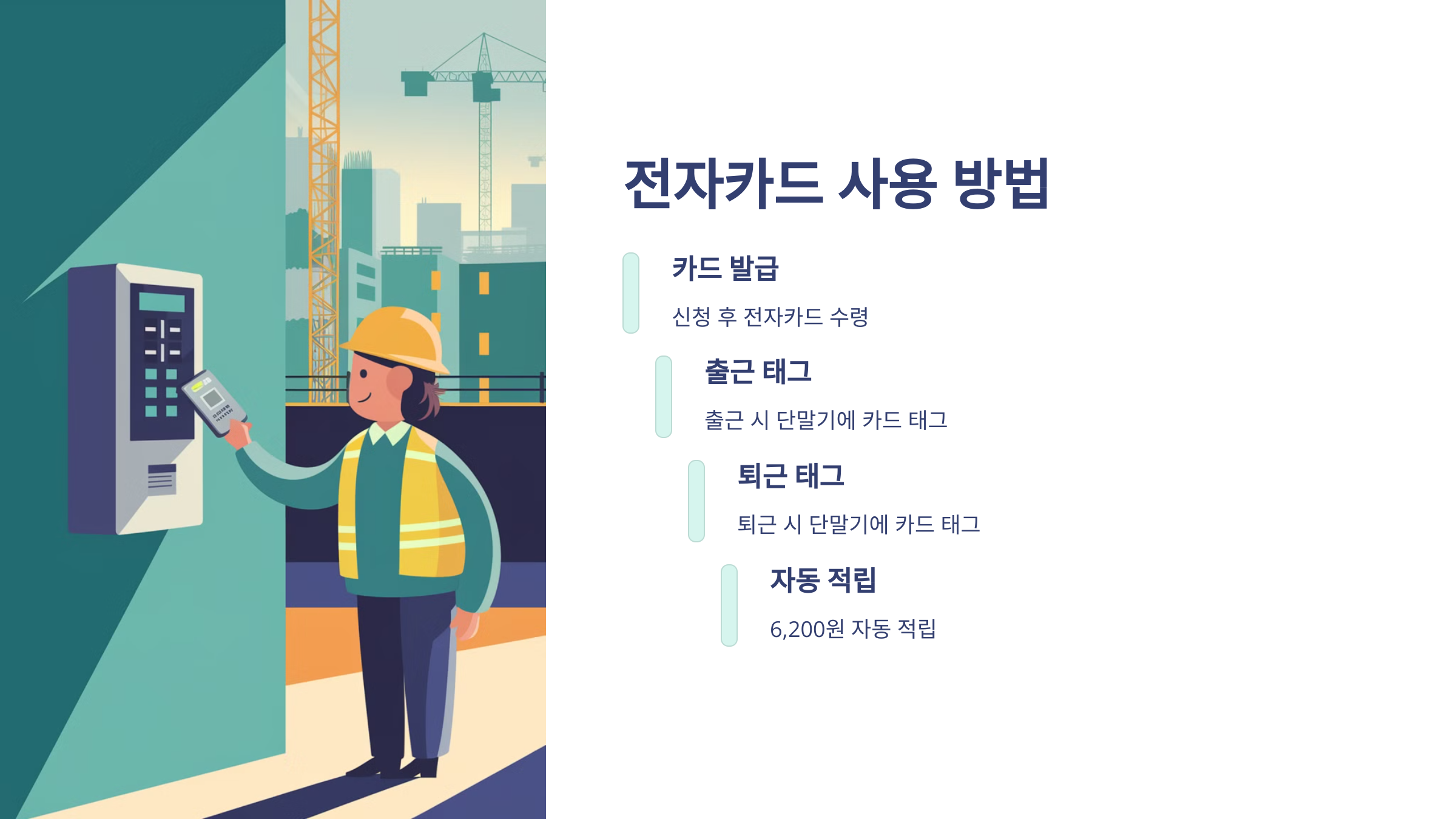 전자카드 퇴직공제금 제도는 건설업 종사자들을 위한 제도로, 매일 일정 금액이 자동 적립되어 근로자의 퇴직금을 보장합니다.