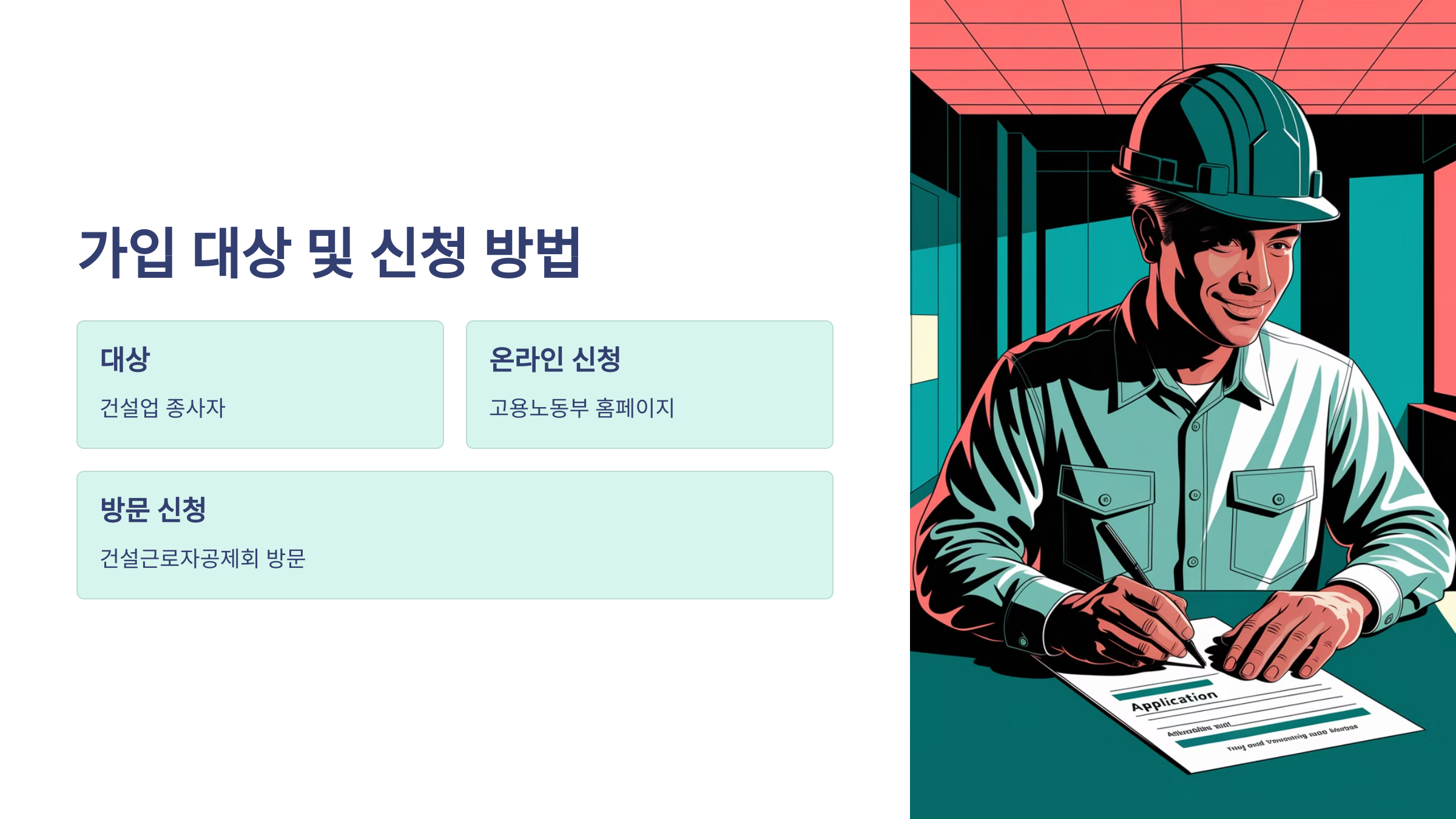 | 가입 대상은 누구인가요? | 건설업 종사자 (현장 근로자 포함) |