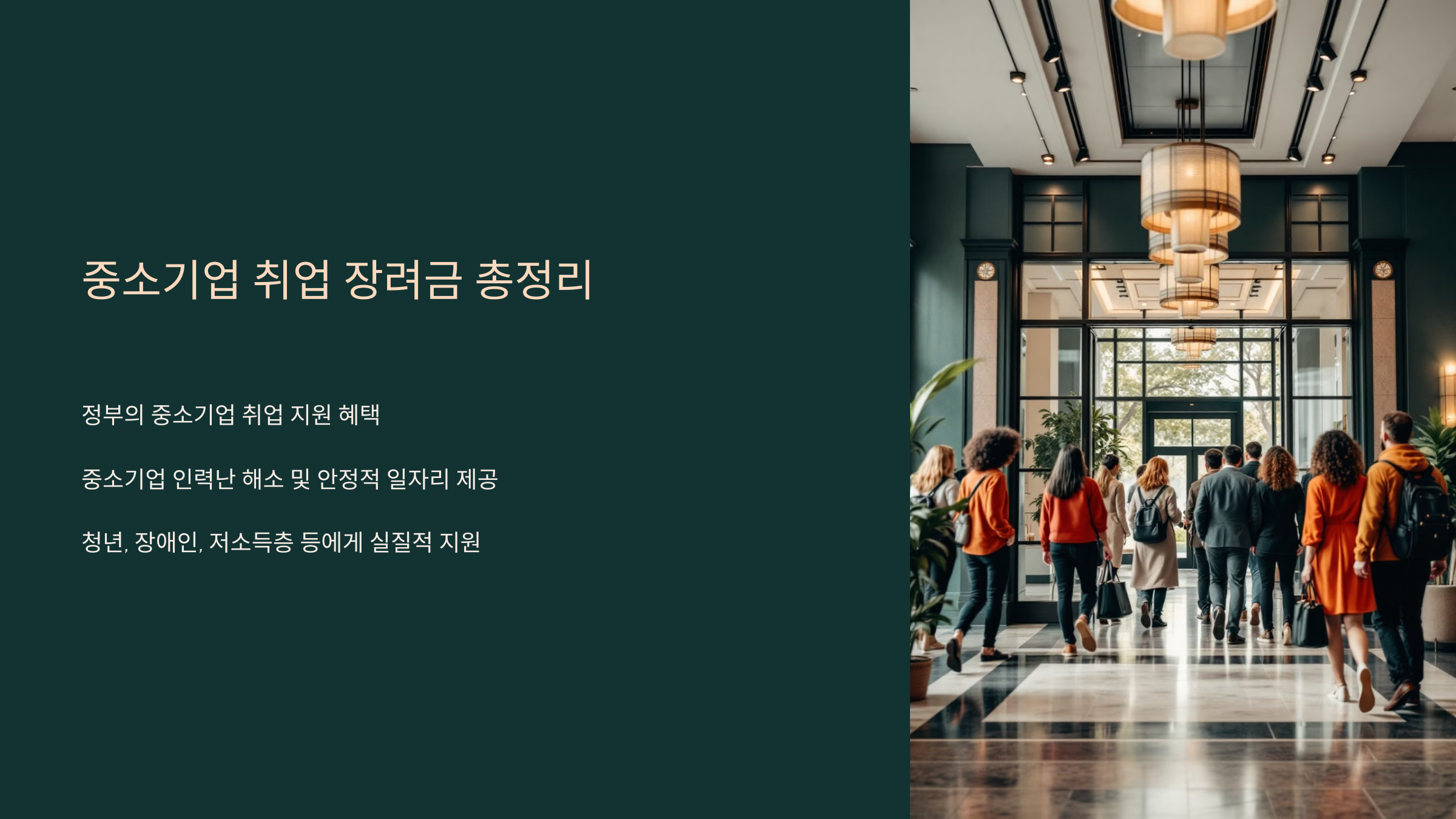 중소기업 취업 장려금은 중소기업이 인력을 채용할 때 제공되는 다양한 금전적 혜택으로, 이를 통해 구직자들은 안정적인 일자리를 얻을 수 있으며, 중소기업은 인력 채용에 대한 부담을 덜 수 있습니다. 지원 혜택은 대상자와 기업에 따라 다르게 적용되며, 아래에서 자세히 설명하겠습니다.