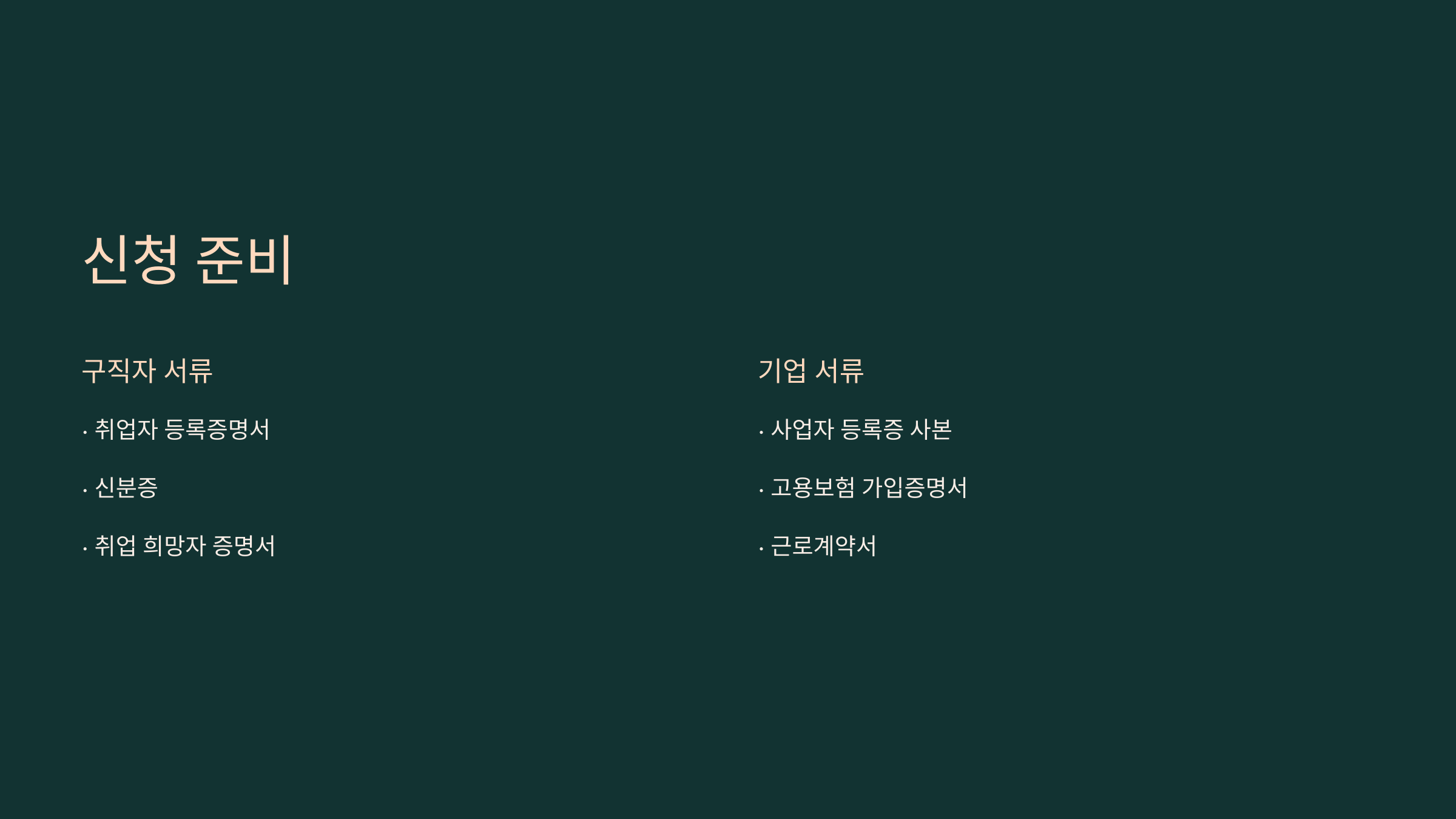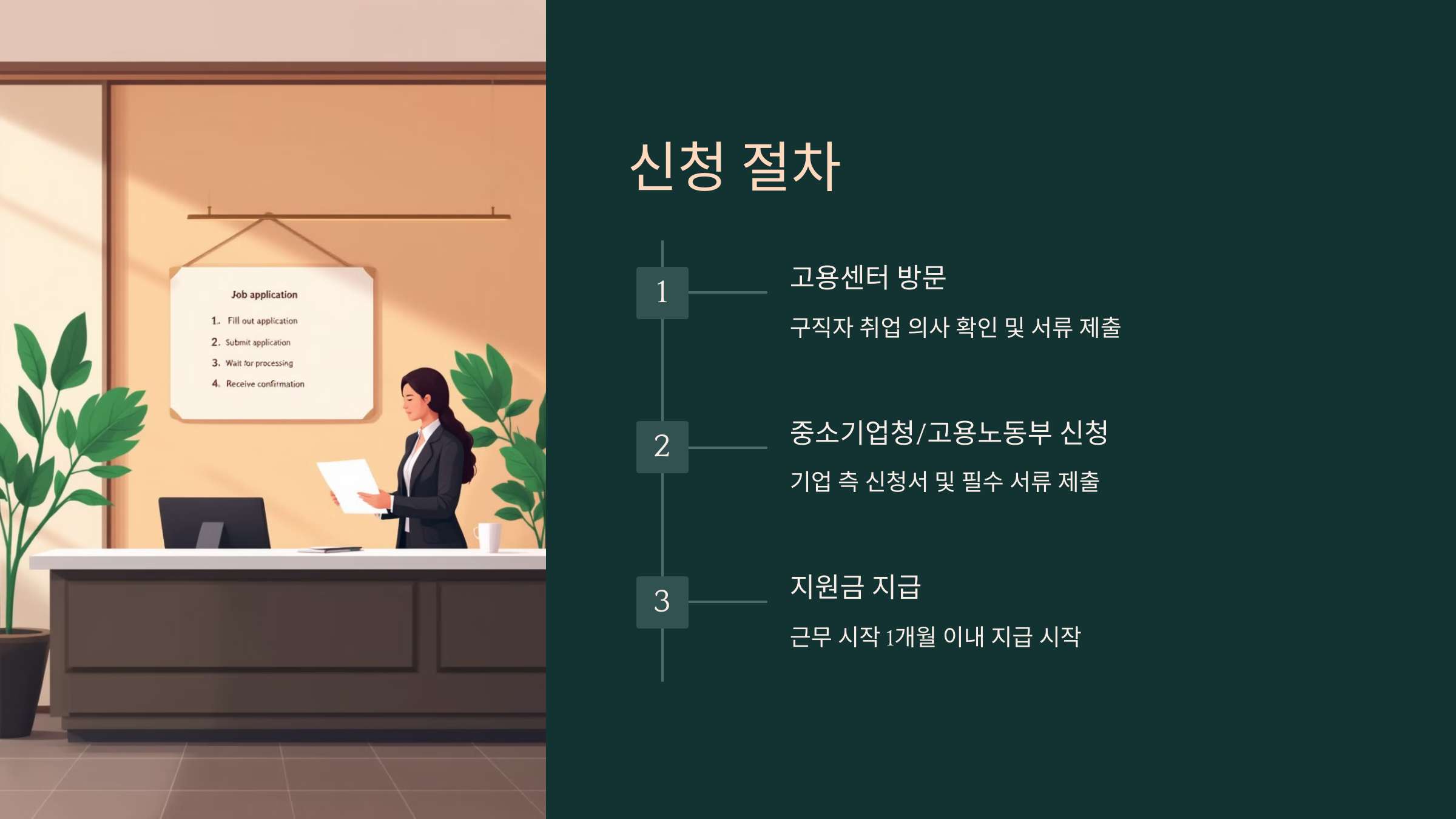 신청 절차는 두 가지 주체가 있습니다. 구직자와 기업이 각자 해야 할 절차를 순차적으로 설명하겠습니다.