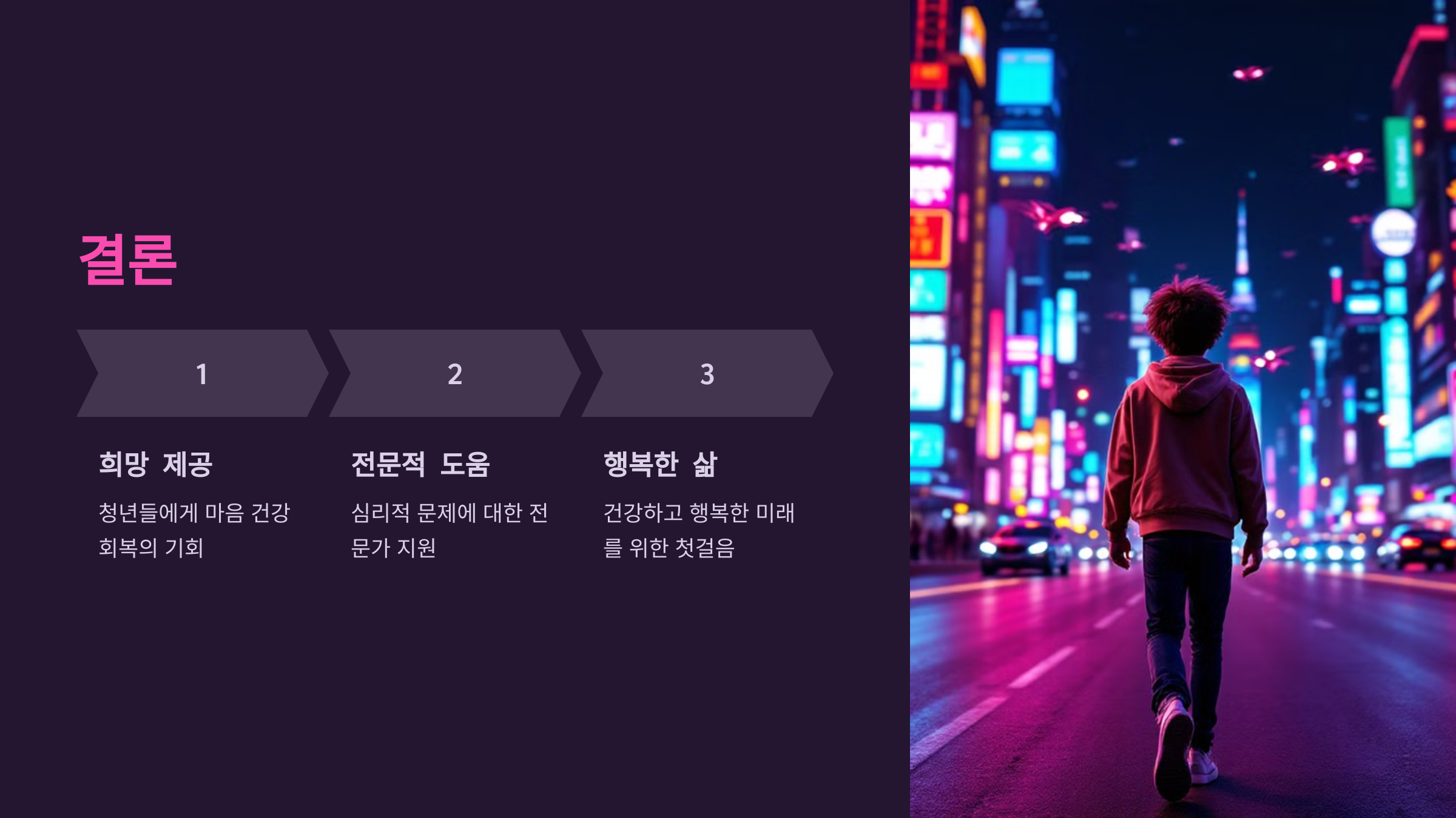 청년마음 건강지원사업은 단순히 치료를 제공하는 것을 넘어, 정신적으로 힘든 청년들이 건강하고 행복한 삶을 살 수 있도록 지원합니다. 마음의 문제는 시간이 지나면서 더 커질 수 있기 때문에, 이러한 지원을 받는 것이 매우 중요합니다. 청년들자신이 겪고 있는 어려움을 조금이라도 더 쉽게 해결할 수 있도록 돕고, 그들의 마음을 따뜻하게 돌봐주는 이 사업은 앞으로도 많은 청년들에게 큰 도움이 될 것입니다.