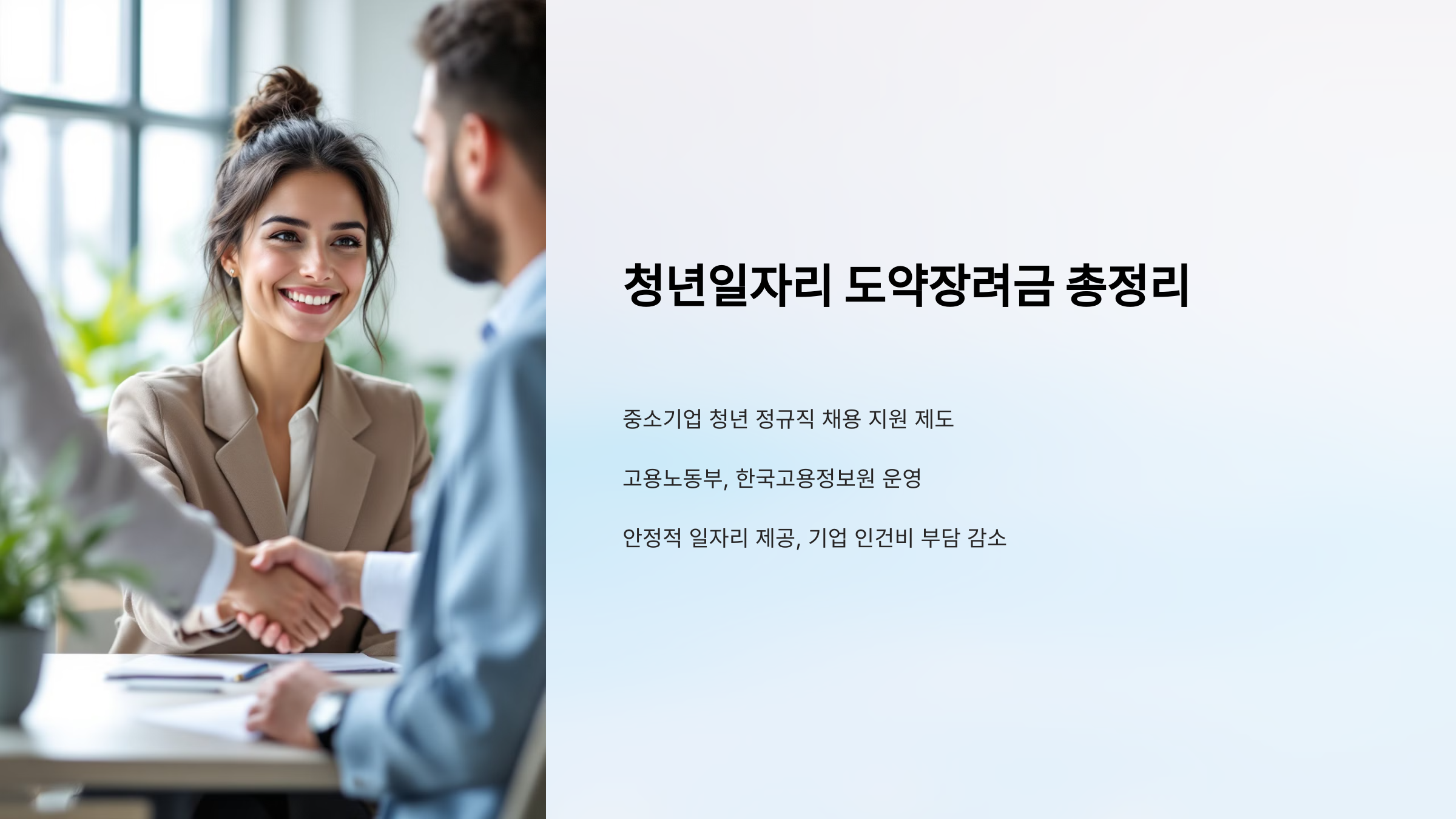 청년일자리 도약장려금은 기업이 청년을 정규직으로 채용하고, 일정 기간 고용을 유지했을 때 인건비 보조금을 지원하는 제도입니다. 기업은 고용 비용 부담을 줄이고, 청년은 안정적인 일자리를 얻을 수 있는 장점이 있습니다.