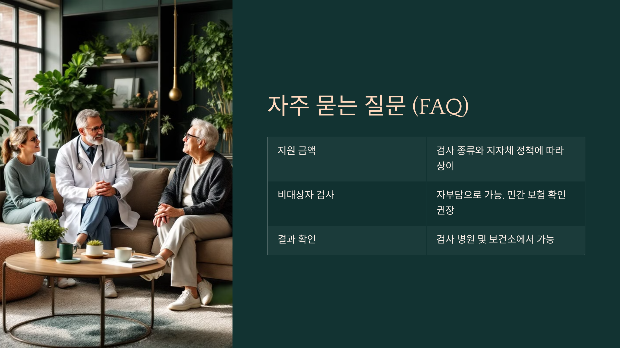- 지원 범위 확인: 검사 종류와 지원 한도는 지자체별로 상이할 수 있습니다. 특히 CT, MRI 등의 정밀 검사 항목은 일부 지원에서 제외될 수 있으니 사전 확인이 필요합니다.