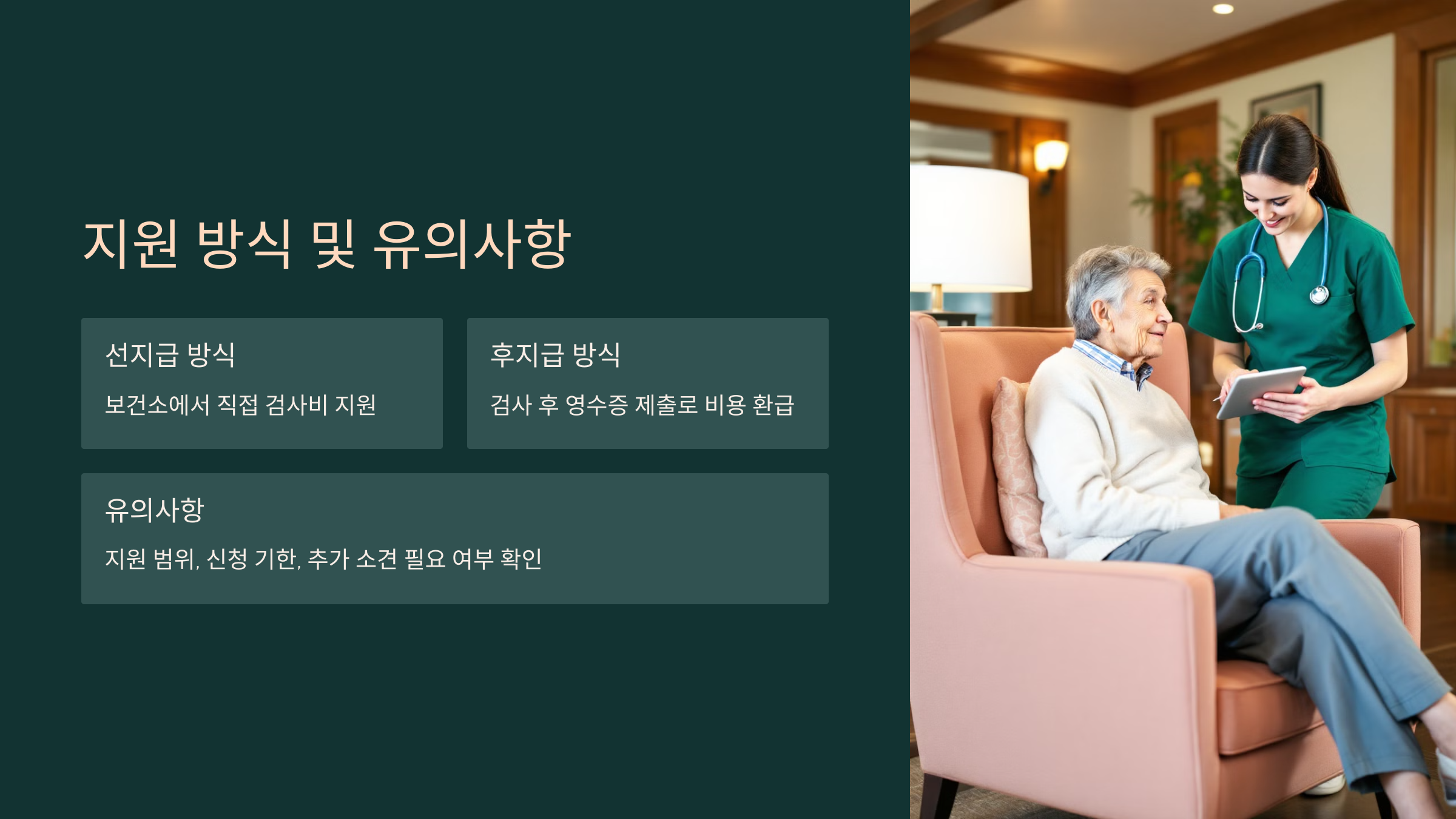 - 신청 기한 준수: 검사 후 일정 기간 내에만 지원 신청이 가능하므로, 검사 후 빠른 시일 내에 신청을 완료해야 합니다.