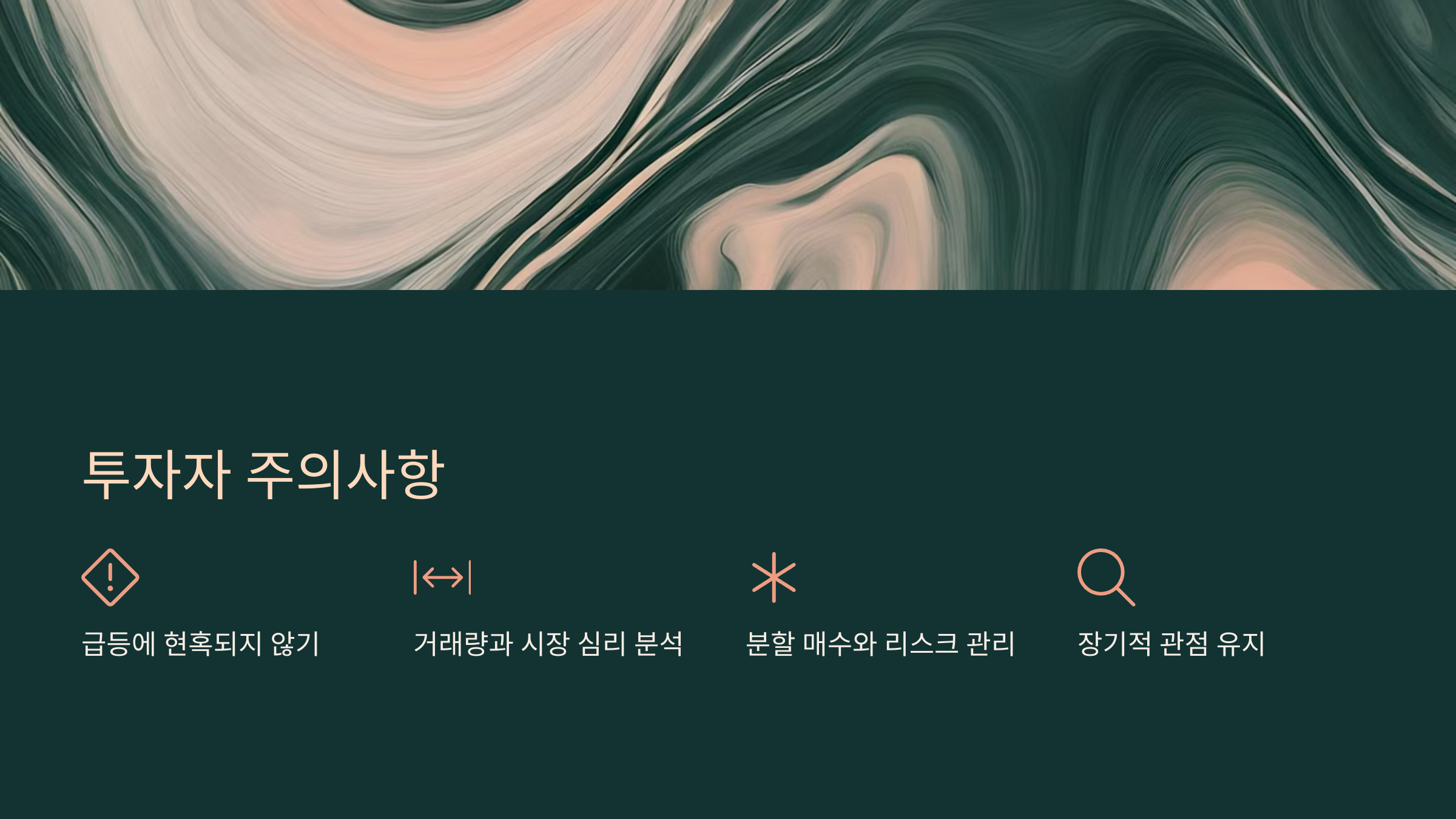 - 한 번에 모든 자금을 투자하기보다, 분할 매수를 통해 리스크를 줄이는 것이 중요합니다.