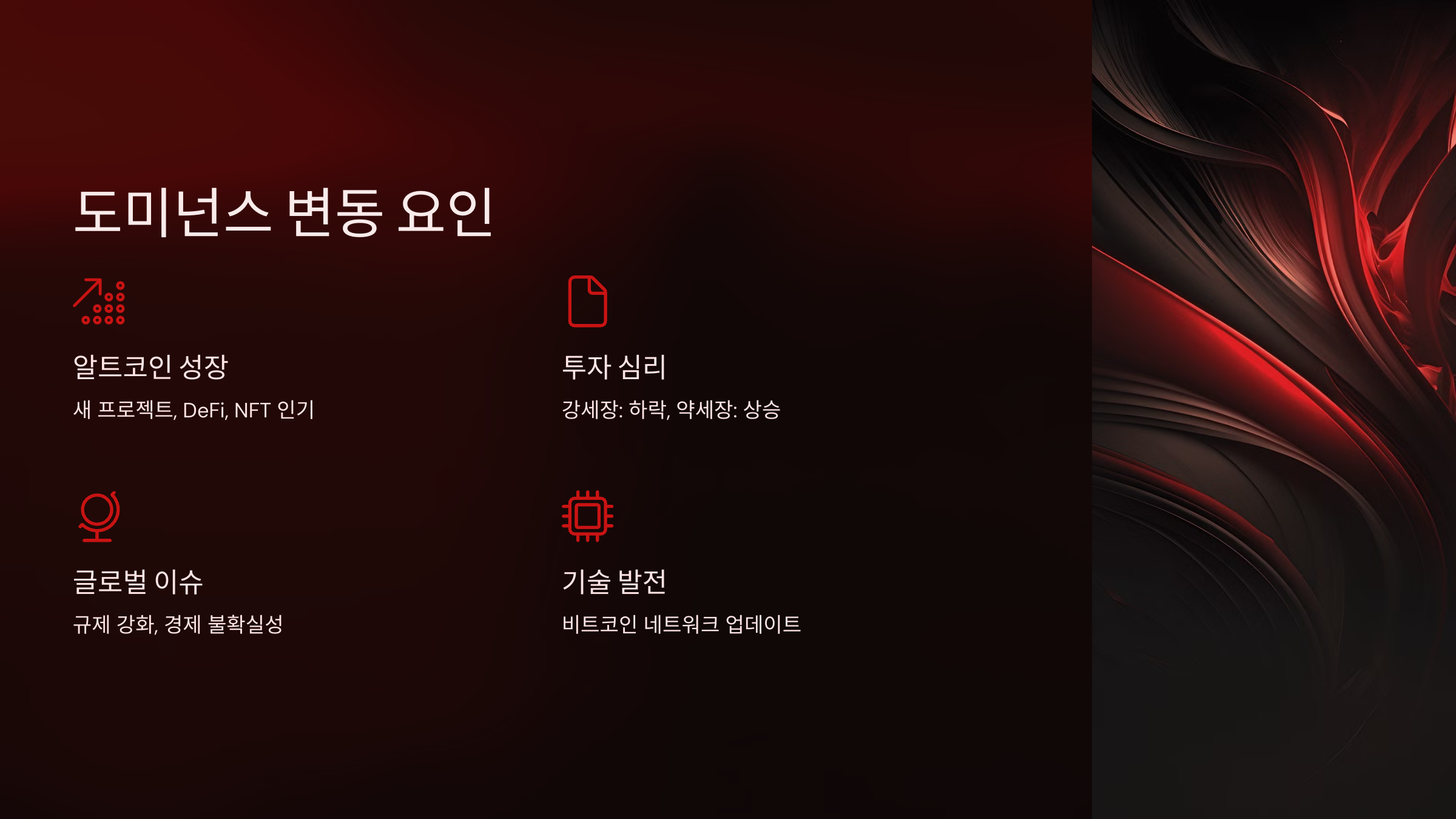 비트코인 도미넌스는 시장의 상황에 따라 변화하며, 다음과 같은 요인들이 주요하게 작용합니다.